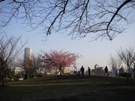 公園で、まだぜんぜん寒いのに、