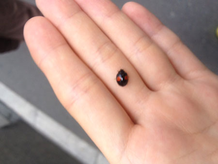 てんとう虫さん。歩いてたら、服にくっついていた。