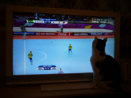牛は、カズが出場している、フットサルの試合を見て、