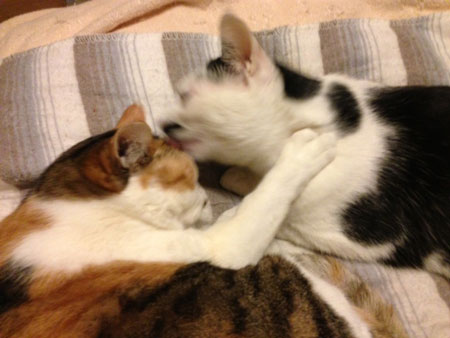 ▲しつこくしつこく、毛づくろいしてあげる牛。