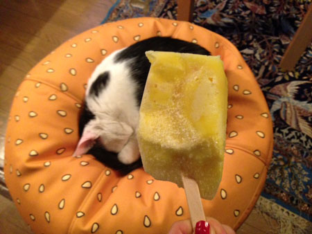 <小さな悩みと、「今でしょ!」> エイプリルフールにちわーっす。 毎年、なんかしてかしてやろうと思うのだけども、 できない俺ですわ。 大学生の頃は、 「いま、家の下にいるんだけど、ちょっと出て来てー」 って電話をかけて、 「あれ?いないよ??」 「えー、そりゃそうだよ。行ってないもん」 というやつを、毎年、誰かしらが誰かしらにする。 っていうのをやってたなぁ、と思い出して、 なつかしく思っておりましたよ。 わたしは同じ人から2度、されたことがあります。 何の自慢にもなりまへんっ。 あーもうっ! 桜は散りまして、沈丁花も枯れまして、 こどもの頃から好きな沈丁花の香り・・・。 今年もマスクの上からほのかに感じる香りを、 積極的にいきたいところ、 鼻から花粉を取り入れたくないから、 かなり消極的にクンクンして味わいましたよ。 そんなふうに、花が咲き、散り、 各方面で季節がうつっていっていたはずなのに、 なんだこの寒のもどりは!ゴーアウェイ寒!! もういいよ〜どうぞお戻りくださいませーーー。 おつかれさまでしたー。また冬に会いましょう。 もう、冬までゆっっっっくりお休みくださいなっ。 でさ、この季節に毎度どうしたもんかと思うことを、 吐露っていいですか。 お風呂上りに化粧水だの、スキンケアをするじゃない。 するんだけど、してるそばから鼻水が出ちゃうから 鼻をかみます。 すると、せっかくの保湿が ティッシュペーパーでぬぐわれてしまう。 さらに、また保湿をし直したとて、またすぐに鼻をかむ。 ・・・どうしたもんでしょうか。 花粉症ユーザーのみんな、そうならないかい?? どこかで、見切りをつけて、 鼻をかむのを先延ばしにするなり、 保湿をあきらめるなりしないといけないのよねぇ。 小さな悩みです・・・。 同じようなことで、点鼻薬ってやつも、 わたしはどうにも、シュッと点鼻したところで、 すぐに鼻をかむことになるので、意味があるのかないのか、 わかりまへんねん。 でも去年ぐらいから、点鼻薬が好きなひとって、 増えてるのよねぇ。 どうもわたしは上手に使えないままでいるよ。 まあ、そんなことはいいとして。 去年、みんなを夢中にさせたガリポタこと、 ガリガリ君コーンポタージュ味ですが、 このあいだ友だちが 「去年のガリポタまだ冷凍庫に入ってる」 とツイートしていたのです。 おー!まさにまさにトミーズ雅に、わが家の冷凍庫にも、 多めに買って、最後の1個を もったいなくて食べれなくて大事にしすぎた結果、 食べたい気持ちがまったくなくなり、 そのままになって、 なんなら形もなぜか変形して、ちょっと丸くなっちゃった ガリポタがある。のだ。 今となっては、コンビニに大量に売っているガリポタ。 わたしはあれを、いつ食べるか?今でしょ!(ナウい) ってことで、お風呂上りに食べることにしました。 寝ている牛を背景に、変形したガリポタさん。 なぜこんなお姿に・・・。 霜がおりて(?)ますますせつない感じに・・・。 正直、まったく今の気分ではないのだけど、 今でしょ!ってことで、今、ノリで食べます。 味がすごく凝縮された気がする。 やっぱり、おもしろい味だなぁ。 でも、やっぱり缶のコーンポタージュ好きとしては アリでしたこのお味。 いつか、赤城乳業に工場見学に行ってみたい、わたしです。 さ、今週のお2匹さん。 最近は、春になってきたから、だいぶ活発?になってきた お2匹さん。 ワンッ! ツーー! スーパーボール相手に、 ワンツーワンツー大忙しのミッツさん。 玄関の前ですぐにこうなっちゃう長い牛さん。 「いますっごいいいところだから、 じゃましないで」 と言わんばかりの表情。 さ、新年度、はりきってこーーーーー!しくよろしくよろ!