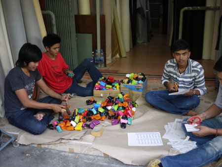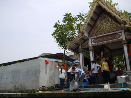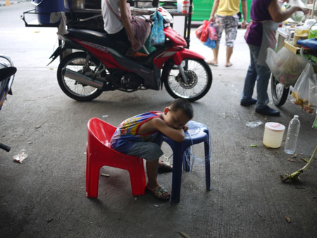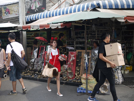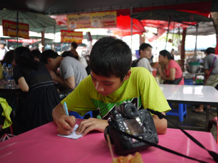 <タイに行っタイきました。(後編)> またしても寒のもどりにちわ!! なんなの!寒っ! 風邪ひかないように、気をつけねばですよこりゃ。 さてさて前回、だいぶおもしろいタイをご紹介しましたが もっともっとほんとうは色々ある! んだけど、全部は紹介しきれないから、 また一部、レポートさせていただくわっ。 タイという国は、そこかしこに、 とにかく王様のお写真が飾られている! 町の道路に、 ちゃんとかしこまって撮影した、 っていうよりも、 ふつうにパパラッチが撮ったみたいなやつが、 飾ってあるんだよね〜。 あと、不思議な合成がされていたり。 ▲田園と、王様!不思議! お店の一角には、わりとかざってある。 ▲愛犬(?)といっしょに。 これはちゃんと撮ってるけど、 わりとラフなプライベートショット的なやつ。 ああ、不思議。 そして国民のみなさんは、とても愛想がいい。 ニッコニコしてくれるし、気がやさしいのが すごくよかったわ〜。 カメラを向けると、みんな、 笑顔でなんかしてくれる。ウェルカム感。 こどもを見せてくれる。 へんなポーズのまま、かたまってくれる。 店先の外で作業中、手を止めて カメラ目線をくれる。 自分が撮られているわけじゃないのに、 ピース。 ▲ほんとは手前の、電柱にくくりつけられて、 そのまま植木鉢と化した ヘルメットを撮りたかったんだけど・・・あ、ありがとう。 他の国だと、自分が写ってるかもしれない っていうだけで、顔を隠すひととかいたけど、 ずいぶんとウェルカムでびっくり〜〜! ありがとう、みなさん。 あと、この季節は1年で一番暑いという時期らしく、 毎日40度を越えて、歩いてるだけで、 汗ダーラダラなのだけど、 どうやら、現地のひとたちも、そうみたい。 ▲元気に食べ物のテントでお手伝いをしている少年。 オーダーをメモ。 ▲さっきまでふつうに元気だったのに、なぜだか急に かごをかぶって、寝てしまった・・・。 歩いていると、わりとそういう子どもを 見かける。 ▲だいじょうぶかーーーー! 実はこれ、子どもだけじゃなくて、 大人もなんだよね・・・ ▲奥の水色のボックスの上におばさまが 寝てらっしゃる。 こういう方を、そこかしこで見かけたよ。 みんな、自由だね。 色々回ったけど、とても印象に残ってて興奮したのが、 水上マーケットっていうやつ。 週末にやってて、川を船でツアーみたいに回ってくれて 途中に、船で食べ物とかを売りにくる。というもの。 こういう船に乗って、 こういう川をひたすらに。 さらに、この川は、住宅街で。 一番うしろのおばちゃんが、ガイドをしてくれる。 ディズニーランドのジャングルクルーズみたい。 左右にひたすら、水上の家が建っていて、 どれもかなり古くて、かっこいい! 「暮らしてる」感が力強くて、流れてきた時間も感じるし、 ものすごいパワーなのよ。 それに興奮してしまった。 ある意味、パワースポットかもしれない。 そしてやっぱり川沿いのひとたちも、 自分たちの家がジロジロ見られているにもかかわらず、 ウェルカム。 洗濯中も笑顔。 家族で笑顔。 みんなで笑顔。 ひとりでも、笑顔。 すごいなーみんな。 しかもガイドさんがマイクを使って大きい声で歌ったり、 日本語とか英語とか、中国語とか、色んな国の言葉を使って ガイドしてるから、うるさいと思うんだけど、 ぜんぜんウェルカム! あ、むこうから、ちいさい船。 どうも〜。 ご近所に行くために船に乗ったりするみたい。 あと、どうやら郵便屋さんも、船で来るっぽくて、 ポストが、川にむかって吊り下げられてるの! こういうところに、 えーこれ、ポストってゆーか、手作りすぎ! 洗剤かなんかの空になったやつ。 びっくりだーーー。 あと、周りにジャングルみたいな自然があるのに、 植物を育ててる。 ふしぎー!そういうもの? あと犬もわけわかんないところに! 自由だ。 みんな、たのしそうだ。 犬といえば、タイにはやっぱり 自由な犬ねこがとても多くて、 見かけると、つい写真を撮っちゃう。 お、いたいた。 わーそんなにアピール。 お、いたいた、かわいこちゃんが。 赤い耳のね。・・・って、女性やんけっ! ペットフードの試供品を配ってるお姉さんで、 あとでわたしはこのひとから、 無言でキャットフードを渡されるんだけど、 なんでバレたのかなぁ?? いやー、とにもかくにも、タイすごかっタイよ。 紹介しきれんばい。 今度はバンコクだけじゃなくて、 チェンマイのほうとか、いろいろ行ってみようと思うよ。 ごはんはおいしいし、みんなやさしいし、 たのしい!! やっぱりこうやって、海の外に出かけるのは、いいやね〜。 たのしいし、ふだんにぶっている五感とか、 平和ボケでゆるんでるネジが、 異国ゆえにキュッとしまるね。 お2匹さんも、ねこの親戚たちにお世話お願いして、 助かったー。 お2匹さんにお土産も買ったよ。 お店で、ビニール袋に入って、ほこりまみれになってた。 お店のひとはどうも、「こんなの買う人いるんだ!」的な 目