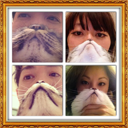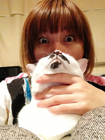 <いま巷で流行っている、#CATBEARD。> まもなくぅ〜・・・ 5月が終わって6月こんにちわだよちにわーっす。 先日、出勤途中の信号待ちで、 インドの方に 「おはよう〜〜元気ですかぁ?あっついですねー」 と、話しかけられて、 「アハハ」と流していたときに、 この暑さと、この出来事により、 「今日はカレーだ」 とこころに決めて、 お昼ごはんはカレー屋さんに行ったわたしです。 週末に朝風呂をしていたら、何か音楽が聴こえる。 何も鳴らしてないはずなのに、ママスパパスの曲が なーんか聴こえる。 と思ったら、ルンバがただウィンウィンと がんばっていた音でした。 もともと、聞きまつがいが多いタイプだけど、 こういうのは自分的にはめずらしくてさ。 空耳を越えた、もはや幻聴未満レベルですな。 最近巷で流行っている 「ねこをヒゲにする」遊び。知っとるけ?? 仕事中に見つけて、 「これをやるために、いますぐ帰りたい!」 と思ったほどですよ。 一部はここに載っているので、ちょっと見て! どうやら「catbeard」というハッシュタグがあって、 けっこう盛り上がっている! でででで、帰ってすぐにやってみた! お?けっこううまくいってない? 牛も、けっこう簡単に上をむいてくれるということが判明。 目を大きく開いて、びっくりしたみたいなふうにすると、 いいのかも? つかれた。首がつかれたらしい。 「なにさせとんねん」と言わんばかりの目つき。 ・・・どうもしっくりこない。 なにがいけないんだろう? ハッシュタグを検索して、研究してみる。 ねこの親戚たちも、すぐにやってみて、 互いに送り合い。 ▲右上:サバ美、右下:コムタン 左上:熱帯、左下:亜熱帯 みんなけっこう上手にできてる! だけど、どう見ても、 左の列の熱帯亜熱帯のところが一番上手! (熱帯亜熱帯は、へんちゃんの里親になった 友人・イシイさんのところです) 彼曰く 「ねこを人にあわせず、 人がねこにあわすべし」 という、なんか格言的なアドバイスをもらった。 「下からあおる、寝るなど」 だって。でも、そうもいかないんだよなー。 失敗すると、こうなります。 「しつこいよ!」 ねこの、そういう意思をハッキリと表すところが、 好きです。(完全、尻に敷かれてる) 目の表情で、うまく見えないかなと思ってやってみるけど、 どうやら意味がない・・・。 牛がもっと、口をおちょぼにしないで、 口っぽくしてくれれば! それか、お口のまわりのぐちゃぐちゃ模様を、 もっとシンプルにしてくれれば! ・・・ああもう!わけわからん! イメージ検索すると、たくさん出てくるんだけど、 なんかみんなうますぎて、嫉妬ーーー!! もうちょっと研究してみます。 いろいろ画像を見てると、犬とか、 モルモットでやってるひととかもいて、 けっこうおもしろいよーー。 色んな遊びがあるもんですねえ。 だれがやり始めたんだろうか。 あ、ミッツは、だっことかされると、 ガッチガチにかたまって、イヤがるので ねこヒゲできないから、 かわりに、キュンキュンショットを。 ささっさ今週も、エイエイオー!