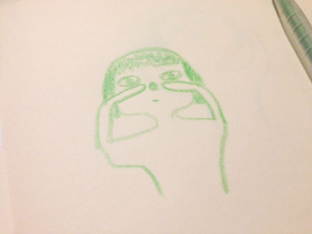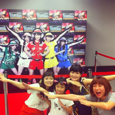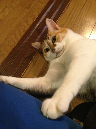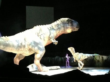 <「まぶしがり」と恐竜と。> 残暑お見舞い申し上げまっせにちわー! ついに、残暑になりましたよ、 残暑だいぶきびすぃーーーー。まったくまったく。 わたくし、わりと、まぶしがりです。 「まぶしがり」て、なんかラ変の仲間っぽいね。 「あり・をり・はべり・まぶしがり」みたいな。 んなこたぁないか! 「まぶしがる人間」ってことですけどね。 まあ、まぶしがりなんですわ。 で、手をサンバイザーにしたり、 あと、望遠鏡のパントマイムみたいな感じで、 目の周りを手で覆うやつやってるの。 こういうね・・・。 ▲急なおかしな図解ですまん。 で! これが、実は意外なことに、 目の下の、親指が重要だということを 数年前に発見したのですよ。 はじめは、親指はナシでやってたんだけど、 親指を添えたら、さらに楽になったの。 「あ、これって!」 ピーーーーンきましたわ。 あれですわ。 甲子園とか、パ・リーグの選手のイメージの 目の下に黒いのを塗って、 ちょっと 「インディアンウソツカナ〜イ」 みたいな感じになるあれ。 あれは、日除けって聞いてたけども、 ほんとに意味があるんだ! と実体験をもとにして、気づいちゃったのよ。 それ以来、望遠鏡スタイルだとちょっと大げさだな、 と思ったときには、 泣きべそスタイルにすることにしているよ。 こういう。 この方が、おおげさじゃない感じが出てるでしょ? わりと日常的なポーズだもんね。 これをするだけでも、だいぶ楽になる! な〜る〜。 ま、そういう手で日除けする日があったり、 昼間、サングラスをかけて出かけたりしているのさ。 でさ、いつも地味ぃに思ってるんだけど、 サングラスを家の中で、出る間際にかけちゃうと、 忘れ物をしちゃいそうで、とてもこわい! これを友だちに言ってみたら 「わかるわかる!」と言われたので、 安心して、ここで同意を求めてみようと思った次第。 なんで忘れ物しそうになっちゃうかというと、 視界が暗くなっちゃうからですよ、奥さん。 屋外で、まぶしくないようにする道具だからね。 そりゃあ、部屋の中でつけてれば、 そうとう暗くなりますよ。 まだ未体験の方は、ぜひこの夏の間にやってみてね! きっとびっくりしてもらえると思う! そこで忘れ物をしても、責任は追いませぬよっ。 レッツチャレンジ。 先週は、友だち親子を誘って、 「ウォーキング・ウィズ・ダイナソー」に行ってきたよ! なんでも、動く実物大の恐竜のショーだって聞いてさ。 恐竜といえば、でかい、こわい! それが動くって、どういうことかと思ったら、 ほんとうに、でかくて! 動いてて! こ、こわい! でっかあああああ! これらが、ステージ上で、すごいしなやか動きをしながら、 まるで生きてるみたいに、動きまわるの。 もうそのしなやかさと言ったら! 皮の質感とかも、すごくリアル。 その動きの仕掛けも見えるんだけど、 それもすごいの! 大人が見て、 「わー、なるほどお!」 ってなるから、大人は大人で盛り上がる! 子どもにとっては、けっこうこわいと思う。 ほんとうに生きてるみたいなんだからね。 ああ、すごかったわー。 海外のひとたちがやってるらしいんだけど、 日本公演の応援団が、なんとなんと、 先週わたしがひとりで大興奮していた、 ももクロなんですねー。 だから帰りにパネルの前で、 記念写真撮ったZーーーーーーーーーーーーーー! わたし、こんなパネルでも、超うれしい! 完全にロックオンされている、わたしです・・・。 さ、今週のお2匹さーん。 ▲「あっちーよーーー」 ▲「あっちーーーーーーー」 かわいいいいいいいいいいいいい! ミッツがなんだかぬいぐるみのようだ! ひょえーーーかわいいいーーー! どうしたのー! それに比べると、牛のダンディっぷり。 ▲ダン・・・ ▲ディ・・・ズム! こういうダンディな面を見ると、 さすが男の子というか、オスだよね〜と思うね。 ずっと一緒に暮らしていても、 性格がぜんぜんちがうから、猫それぞれ。 ああ、これはダンディというよりも、 ホラーにも見えてきた。 受け取り方は、人それぞれや〜。 ではでは、みなさま、夏休みしたりしなかったり、 エンジョイ our サマー様ーーー! 宿題やれよーーーー!