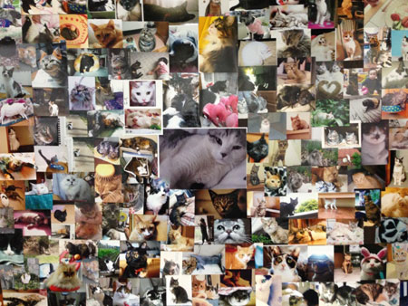 <夏休みっぽいことと、岩合光昭さんの「ねこ」。> 8末にちわーーーーーー! もう8月が終わるんだって? うそ〜ん、ちょっとちょっとーーー。 待ってよー8月ぅ。 9月、まだゆっくりしてていいよ!ね。 先週は、夏休みのこどものような仕事で、 タマムシを探しに行ったり、 ゲームをしたりしたなぁ。 仕事じゃないみたいだけど、お仕事ですけど、 たのしかったなぁ。 ▲思わず「小学生か!」という声が聞こえてきそうで、 それは決してほめているわけではないのに、 「いやいや〜えへへ」って言っちゃうバカなわたしです。 こんなはずじゃなかったんだけどなぁ・・・。 そのタマムシを探しに行く途中で寄ったコンビニで 妙なものを見つけたんですよ。 なにこれ?? 変顔48面相カードガム? こんなの、見たことないぞ。 これは・・・たのしい予感! 興奮して、タマムシメンバー全員分を買って、 車の中で配っちゃったよ。 これが、たのしくて、 帰り道にもひとりで研究しちゃったし、 ▲しっくりくるポイント探しがなかなかたいへん。 ミュウゼさんにも貸したりして、 そしてそしてとても気に入ったので、 箱買いしちゃった。 これぞ大人買い! みんなの顔をコレクションしようかなぁ。 週末に渋谷のヒカリエでやっている 岩合光昭さんの展覧会「ねこ」。 最終日に駆け込んだわよーーーーー。 岩合さんのは、今まで タイミングを逃して行けなかったから初岩合! で、ねこ仲間たちも続々行っていて、 「鬼混み!」 「グッズ売り場の列が長蛇すぎる!」 みたいなことを言ってたから、 半分あきらめていたんだけど、思い切って、 最終日すべりこみましてん。 入った瞬間、天井の高い場所に、メニーメニーねこ写真! 岩合さんを始め、ねこへの思いが会場を包んでいて、 入っただけで、ちょっとうるっときてしまった! これは、ライブ会場でお客さんがステージに向かって 「わー」っとなってるときの渦に似たものを感じた! 静かなのに、渦。 すごかったわ〜〜〜。 時間がなくてちゃんと見れなかったんだけど、 もうどれもこれもかわいくって いちいちツッコミ入れてったら、 明日になっちゃうところだったよ。 お客さんは、会場内で自分のねこの画像とか動画を、 一緒にきた友達と見せ合っていたり、 展示されてる写真を見て 「これ、うちの子に似てる」って会話をしていたり、 全員の頭の中が、ねこでいっぱい。 ああ、最高の空間や! なんなんだ、このパワーオブねこ! 柱に大きくねこ!が、窓に映って、街にねこ! おおきいねこが、こっちを見てるみたいだ。 会場の外にあった、たくさんのねこ写真。 これは、お客さんが自分のねこ写真を持って来ると、 入場が割引?だか、無料になるというもの。 ああああこれを見てるだけでも、いい! なんてしあわせなんどあああ。 ねこって、なんなのーほんとにもうーー。 ねこって、なんなのよーーー! なんなのーーー! なんやねーーーん! ▲これは、プライバシー保護のため、 ぼやかしてもらっていて、 インタビューを受けているところ。 保護してもらってるのに、口元のせいでバレバレな様子。 わたしがねこ初心者だから、こんなになっているのかなぁ? いや、それはぜったいにちがう。 ベテラン勢も、こんなになるからね。 やっぱりパワーオブねこが、すごいんだ! わーっははははーーー! 知れてよかったよぉ。ねこねこねこーーー最高ー! ではまた来月!達者で暮らせよーララバ〜イ。