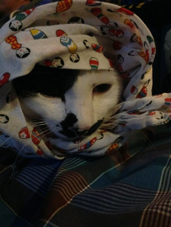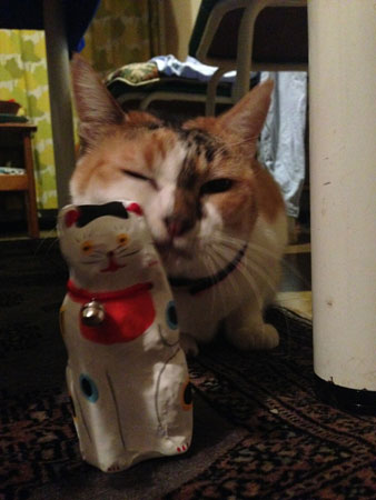 <結果、ツイてた誕生日。> ジャジャジャーン! ひとつ歳をとっちゃったよーんにちわ〜。 この連載をはじめたのが、16歳。 その16歳が32歳になってしまいましたんですけど、 どうしましょ? 数字って、リアルだね〜こわいね〜んっとに。 倍か!と思うとおそろしくなりますが、 こんなわたくしめに、毎度お付き合いいただき、 本当にありがとうございますよ。 なんか、すみませんねえ。ほんとにねーもうねー。 やんなっちゃうわねー。 今年の誕生日は、去年のように、 わざわざ遠くまで焼き肉を食べに行く! というのをやろうと思い、昼すぎに出かけまして。 しかし、けっこうな雨。そして、けっこうな低い気温。 そう、わたしは、実は・・・ ちょっぴり雨女の疑惑があるのです。 例えば、室内から、 「お、雨止んだね?」と思って外に出ると、 急に雨足が強くなることが多々あるのです。 多々というより、むしろいつもレベル。 まあ、気のせいかなぁと思ってたよ。 でも、このせっかくのお誕生日に、 高速道路で、視界が悪くなるほどの雨! 高速のサービスエリアで、傘をさしてても、 雨でぬれちゃって、寒くてブルブルって、 さすがにさー!んもうーっっっ!ツイてねー。 ま、しゃあないよ、たのしい気分で、 レッツゴー!さ。 まずは、せっかく山梨方面に行くんだから、 もともとは、サーキットしたいとか、 富士急ハイランドもいいなとか思ってたんだけど 雨なので、どれもナシ! アウトレットモールに行くことに。 一緒に行った子が、ちょっと前にそこに行ってたから、 ざっくり案内してもらいつつ、 色々見て回る。 んだけど、雨! 移動にいちいち傘さしたり、とじたり、 ああ、めんどくさっ。 ま、仕方ない。これも、イベントだ。 色々見てるうちに、けっこう時間がたっていて、 焼き肉屋さんに行く時間がどんどん遅くなり。 電話をしてみたら、 「もう、お肉なくなっちゃったんですよー」 え・・・! え・・・・?え? まさかのまさかの! そのために、東京から出てきたのに、 軽い気持ちで寄ったアウトレットに、 うっかり時間を使いすぎてしまったのかーーー! ぬおおおおおおおおおおおおおおおおお。 さすがに、膝まずいた。敬意は誰にも払っていない。 ただ、いわゆる「orz」そっくりに、肩を落とした。 なんてこったい。ツツツツイてねぇぇぇぇーーー! そしてこの雨!ツイてね! 一瞬、いや、二瞬ほどどんよりしたんだけど、 友人たちが色々考えてくれて、 「箱根の温泉に行こう! あそこなら、しゃぶしゃぶがあるよ」 おおおおおお、それだ! よしっ! 気持ちを切り替えて、けっこうな大雨の中、 山道をグルングルンして、 着きましたのは「天山」という温泉。 大急ぎで、しゃぶしゃぶにありついた! そして、温泉。 ここのお湯が最高!! 内風呂が1つで、あと5つが露天でさ。 この寒さ×雨で、 あたたまるまではちょっと寒いんだけど、 あたたまってしまえば、こっちのもの! 最高!! 岩風呂やら、洞窟風呂やら、 いちいち、気持ちいいいいいい。 雨もあって、「熱い」中に、ちょっぴりの「冷たい」が ほどよく刺激的で、気持ちがいい〜んだこれが。 後からわかったのが、水風呂は 塩素を使ってない天然水だったらしい。 これはどうやらすごいことらしく、 ふつうは塩素を使ってるから 純粋な純水じゃないらしいんだけど、 これは、もう、純粋な純水! 入ると、キーーーンってささる! 腕を広げると、脇にピーーーーンとくる 水風呂は、初めてだった〜。 とにかく、ふつうの水風呂とは、 肌触りがぜんぜんちがったのだ! 一緒に行ってたサウナ好きも、大興奮。 口コミサイトを見ると、評価がどこも高いし、 有名なんだね〜。すっかりゴキゲンちゃん。 予定は狂ったが、どれもこれも、 イベントだ!最高な一日を過ごせましたわ。 ツイてるぅマジでツイてるぅ〜! ひゃっほ〜〜〜〜。友人たちに大感謝! わたしゃ、いいおとなに、なります!(唐突宣言) さてさて、もはやわたしの人生の 一部としてかけがえのない存在のお2匹さん。 周囲にびっくりされた、牛のしっぽの長さ。 これは、当たり前だけど、 おしりにくっついてるしっぽが、 ぐるんと首まできている寝相。 どうやら、みんなよりだいぶ、長いらしいです。 寒いので、ほっかむられる牛。 ▲このあと、結び目に噛み付き、 ふりほどく。 「甘いねこ展」で買った、招き猫に、 スリスリするミッツ。 ねこを知らない方は、あまりなじみがないと思うんだけど ねこって、ものすごく色んなところに、 頬をスリスリする生き物なのね。 で、何かが目の前にあると、スリスリしちゃうの。 このことはまた今度あらためて、書きたいと思ってるよ。 ま、そんなこった、パンナコッタで、 今週も、フレーフレーえいえいオーッス!