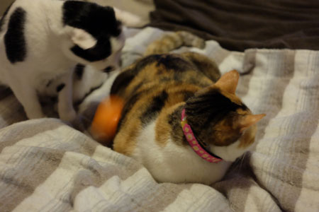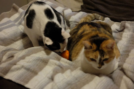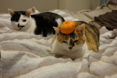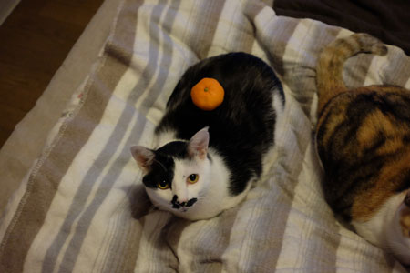 <「おばちゃん」化と、鏡開き。> 成人式にちわーーーーーっす! 成人式! 中山式!(どこの家庭にもある、あのツボを押すアレ) ゆーないと式! 去年の成人式の日の雪が、いまでも忘れられないわ〜。 スーパーマンになったんだよね〜。 なつかしいわん。 最近さー、自分たちの「おばちゃん化」が激しい! と、有名なのよぉ。(自分たちの中で) もう「若い女の子」としては やや手遅れな感のあるお年頃。 いつまでも、ヤングな格好もしてられないし、 「年相応な感じにならないとね」と、思ってるの。 個人的にそう思って、去年くらいから、 服もちょっとずつ、モノトーンを増やしたり、 しているのよ。これでも・・・。 そしたら、やっぱり同級生たちも同じようなことを 思っているみたいで、 「ハデな柄ものは、いつまで着てオッケーか」 「カラータイツはまだ平気なのか」 「ベージュとか茶色い服が、なんかシャレにならん近ごろ」 などということを、いつも話している! あ、わたしのモノトーン増やしキャンペーンは、 ちょっとだけ牛の影響もある。 やっぱり好きな人に近づきたいのかね、 好きなアイドルの持ってる物が欲しい ティーンエイジャーのように、 牛に憧れちゃう気持ちみたいなものが、あるのよ! バカ言ってんじゃないよ〜♪ と歌われちゃうかもしれないけど、 そうなのですよ。 おら、牛になるだ!(byあまちゃん風) で、そういう風に、いい歳の取り方をしようと 思っているのと同時に、 あまりにも自分たちがいわゆる「おばちゃん」っぽくなる 速度のスピード感に、絶賛やや困惑中! 「やっだ〜ん」とか、ものすごくおばちゃんっぽく言うし、 お会計の時には 「ほんといやいや、ほんと受け取って!ダメダメ!」って もんのすごい、しつこくやりとりするし。 なんか、笑ったり、ちょっと感動すると、 涙でちゃうし。 自然にやりながら、 「うわー超おばちゃん!」って言って、ゲラゲラ笑う。 みたいな、もう、典型的なやつを、すっかりこなしている! で、話してるとけっきょく、 「昔はこれを「おばちゃんっぽい」っていう ギャグにしてたんだけど、 いまは、ただ本当に、そうなっちゃてるのね」 ってことになるの。 なんなら、おもしろいからわざと、ギャグとして、 「おばちゃんっぽさ」を演じて遊んでいたのに、 それがもう、シャレにならないところにきているのだ。 「なるほどねー」と思いましたよ。 歳を重ねるということは、こういうことなんだなぁ。 いいおばちゃんになってきたなぁと。 で、おもしろいことに、「おばちゃん」が出ちゃうのって、 同級生といるときがMAX! 不思議ね。 まあ、基本はもう板についてるんだけど、 それでもやっぱり、仕事中とかだと、 そんなに出てないと思うのよ。たぶん。 (自覚なくて、出ちゃってたらどうしよう) そこで気がついたわけです。 年上の人がいると、出ないんだ。ということを。 年上の人がいると、その人よりも若者であるから、 「若者」をやってるんだなー、無意識に。 で、同級生だとやっぱり、等身大として、 出ちゃうんだね、きっと。 あと、年下の人に対しては、やっぱり、 がっつり出ちゃってるわ。 だからつまりは、それなりに「おばちゃん」に なっているということだ。けっきょく。 どんどん受け入れていこうと思いますよ。 おほほのほ〜でざますよ〜〜〜〜。 さーて、鏡開き。 どうやら関東では、1月11日だったみたいなので、 うちも先週に続き、鏡餅をやってみましたよ。 ▲あれ?なんか、餅感がない・・・。 黒いから、か・・・。 ねこって、丸くてお餅っぽいから、 巷ではわりと、ねこにみかんを置いて、 鏡餅をやるっぽいのよね。 ▲こっちの方がまだ、餅感ある・・・かなぁ。 すとんっ。 くんくん。 ▲ねこは、柑橘類が苦手らしいんだけど、 彼はなぜだか、平気。スーパーキャットなのだ! これでどうだ! 「お前、それでいいの?」っていう目。 そんな鏡開きでした。開いてないけど。 さー今週も、寒さに負けへんでぇで、 ふぁいおーふぁいおーふぁいおー!