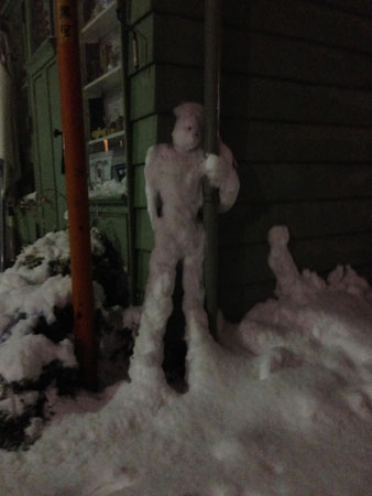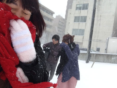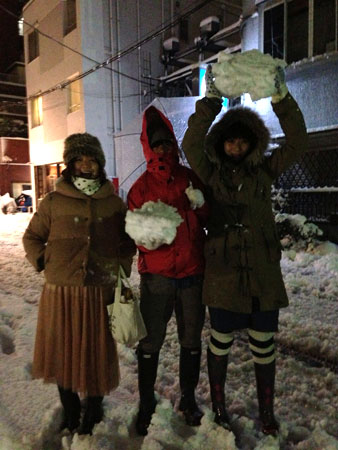 <雪あそび。> すんごかっただーーーー雪〜〜〜ちわ! 先週は、取材で秋田に行きまして、 よりによって、飛行機の到着が少し遅れるほどの雪。 バスに乗って、降りたら、晴れ! 天に味方されてるぅ〜!と意気揚々と、 ごはんを食べに行こうとしたら、 地図の通り到着するが・・・何もない! 地図のピンの場所が いつの間にか移動していたみたい・・・。 道にも、人が歩いてないし、 さっきの晴れが嘘のように吹雪。 なんじゃこりゃーーーーーーーーーー! でも無事に、知り合いの人が連絡しておいてくれた お寿司屋さんにびしょ濡れで到着。 取材も無事に済み、空港に向かうが、 滑走路の除雪作業で1時間フライトが遅れ。 やっぱり東北はすっげぇ〜なぁ〜〜〜。 なんて思ってたら、ああた。 東京も!かいっ。 秋田の日を思い出すような、大雪! びっくりしたけど、しっかりエンジョイしたよー! 昼間は、近所の公園にピクニックへ。 水筒にホットコーヒーを入れて、ポテチを持って、いざ。 ふぉーーーやっぱり寒い〜〜〜! ひゃっほー! ベンチで座って、くつろいでみる。 ホットドリンク最高! ▲マフラーは、雪の日にすると、 そこに雪が積もって、逆に冷たい!ということを 学んだ。 ブランコも忘れない。 近所では、ゆきだるま作りをものすごくがんばっている 青年。 「わー、すっごー!」と言ったら 「後で見にきてください〜〜」と童心ムンムン! 夜はみんな集まれるか、心配だったけど、 秋田土産のきりたんぽ鍋と日本酒の会。 帰り道にみんなで、本気のバトルロワイヤルな雪合戦で、 もう誰のことも信じられない状態に! こわかったーーー。大人って、容赦無いわ〜。 ▲雪の塊を持つ、われわれ。誰が誰やら。 途中、メドューサににらまれたであろう、戦士を発見!! えー!こんな雪だるま、アリ? 棒つかんでるんだよ! クオリティ高ーーーーーーーっ! 作りこんだのか、偶然の産物か? 作りこんだ上に雪が積もったのか?? なんにせよ、きょわいです。 メデューサににらまれたばっかりにねぇ。お大事に・・・。 最後に、ものすごくがんばっていた青年の雪だるま。 夜見に行ったら、案外、そうでもなくて・・・。 念のため、次の日の朝にも見に行ったら・・・。 やっぱり、案外、そうでもなかった・・・。 残念っ。 はー、たのしかった。 やっぱり雪遊びはたのしいね。 全身運動をして、しっかり筋肉痛だし、 ハッスルやわ〜。 実はにわかにもなれていない、今オリンピック。 ほとんどちゃんと観れてないのです。 ここから巻き返すど! しかし、ダウンヒル。男子滑降ってやつ? あれは、さいっっっこうだわね〜。 家でホカホカしてるのに、 あんなにスリルとスピードを味わえるなんてな〜。 スキーをしていた小学生の頃を思い出し、 「できる気」になりながら観ちゃったよ。 心臓バクバク。 ダウンヒルも、リュージュも時速130km以上でしょ?? はーーーーーー、やってみたい!!! スリル大好きTHE平和ボケでしょうか。 まったくソチも悪よのぅ?? ▲赤鬼が、赤鬼に攻撃の節分フィーバー。悪っ! お面を破壊。負けた! ▲朝潮または、朝青龍です! ▲かわいい顔も、ちゃんとできます! さ、今週もはりきってソチってこーーーーー!オー!