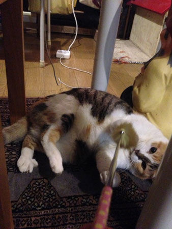 <踊ってる人が好き。> おひなまつりにちわっす〜〜〜! やっぱり2月は早く過ぎるなー。 さすが、日数が少ないだけのことある。 やるな、おぬし(2月)! オリンピック期間って、 DVDを観る時間とかなかったじゃな〜い? その期間、色々ガマンしていたのよねー。 まずは、ももクロの夏のライブのブルーレイ! 途中まで観て、そのままになっていた。 そして、もうひとつはTRFのダンスエクササイズDVD。 前から気にはなってたんだけど、 なかなか手が出ずにいたところで、 コンビニで売ってるライト版を、思わずbuy。 ずっとやりたかったんだ〜〜よ〜。 でも、やる時間がなくて、やっとやってみたよ。 きっと、本当の振り付けとはちがって、 エクササイズ用になってるんだろうなー。 と思って、ちょっとなめていたのだけど、 けっこう合ってる感じ! 見直してないし、わかんないんだけど、 記憶にある動きをしてくれてて、うれしー! ダンスっていいよね〜やっぱり。 やっぱり、体を動かさないとね、春だしね。 今度はみんなでやろうっと。うふふっ。 前に友だちに 「踊る人が好きなんだね」と言われたときに、 「は!」っとしたのですよ。 そうだ、昔から、そうだった。 さかのぼれば、チェッカーズ。 自分はほとんど記憶にないんだけど、 テレビの前で、電気スタンドを、 スタンドマイクにして踊りながら、 歌ってマネをしていたあのころ・・・。 そして、物心ついてからの、SMAPがあり、 小室ファミリー、MAXがありーの、 モーニング娘。があり、ちと休憩。 ちょっとだけAKBに行きつつ、 現在のももいろクローバーZ!!! どうやら主に、女子のダンスが好きや〜。 ももクロといえば。 カラオケに行くと、毎回ももクロを 入れるようになったんだけど、 やってみてわかる、ほんとーーーに彼女たちは、 すぎょい! まず、カラオケでは、 本当はお客さんの方の役をやりたいから、 歌ってくれる人がいるのが一番希望。 いない場合には、歌いつつ、踊りつつ、 お客さん役の掛け声を入れつつで 全部やらなくちゃならないから、 もう、ぜーぜー疲れちゃうわ、動きすぎて、 壁に手をぶつけたりしちゃうわ、てんやわんやですよ。 ダンスも歌も掛け声も、全部が中途半端だけど、 それでも、あんなに大変で、大汗かいて、超真顔なのよ。 なのに本人たちは、どうしてあんなに笑顔のまま、 歌って、踊って、かわいくってはじけているの! しかもライブでは、あいだに休憩があるにしても 4時間とかだよ。すごいっ。 トレーニングの賜物すぎるね。 ああああああ、また尊敬だ。 会ったらめっちゃくちゃ緊張しちゃうと思うよ。 尊敬しすぎてて。 あの活動は、彼女たちの一生の支えになるだろうなあ。 というのも週末に、中高のバレー部会に行ったら、 2か月の赤ちゃんを連れてきた先輩が 「子育て超大変!バレー部の次に大変だわ」 って言ってたのを聞いて、ワオ! その考え方は、初めて聞いたぞ! やっぱりバレー部の人たちは、 あのときのつらかった思い出を常に胸に持って 「あれよりましだ」とか、 「あれをがんばれたんだから、いける!」とか、 思っているのよねー。わかるわ〜。 だからさ、レベルもぜんぜんちがうけど、 みんなそれぞれに、「あれよりまし」定規を支えに持って、 がんばってるんだじょーーーー。 これからも、持っていくんだじょーーー。 立てぇえぇぇ、立つんだじょーーーー。 さ、今週のお2匹さん。 最近のミッツがまたどんどん進化していて、 どうしよう!ミッツの進化がキャントストップなのー。 先週は、いつも抱っこも嫌がるようなミッツを、 ひょいっと膝の上に乗せたら、ゴロゴロ言いながら 落ち着いちゃって、 膝の上でお腹出してごろーんってなっちゃったし、 初めて腕枕しに自分から来たし。 友だちが来ても、ベッドの上からどかずに、 そのままいて、写真撮らせてくれたし。 ああ、春だからかなぁ〜。んもう、すごいんだからー。 そんなミッツと牛の、ねこじゃらし好きも 相当なものでして。 テーブルの下で、じゃらしていると。 キラキラした目をして、狙ってくる。 わあ。 ハムッ。 シャッ。 ゴロリーーーっ! 牛はどこ行った? ああ、かわいいねえ。 春だから?春も毎日、よろしくね。 あ、そうそう、牛が、坂本美雨ちゃんの MVに友情出演しているのよ! よろしければ、ご覧あれ。コチラ。 さ、今週も、K粉だって ぎゃふんと言わせてやろうぜい!よろしくぅ!