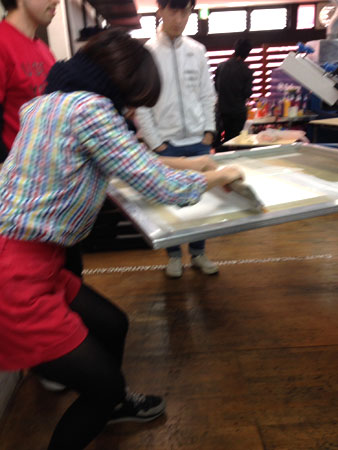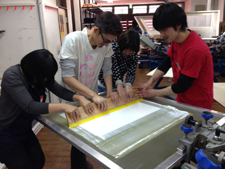 <ワークショップでトートバッグ。> ゴールデンやってるか〜い?(イェーイ!) ウィ〜クやってるか〜〜〜い?(イェーイ!) 週末は、ももクロのファンクラブイベントに 初めてひとりで参戦したっ! 正確には、同じくファンクラブに入ってる友だちと 一緒に行って、席はバラバラ。 ついに・・・そんなことができるようになってしまった 俺・・・。 ちゃんとたのしめちゃったし。 ・・・わたしは元気です! ちょっと前に参加したワークショップ。 SERIGRAPHY TOKYOという、 シルクプリントの業者さんが始めた シルクプリントのワークショップだったの。 お友だちに誘ってもらって、行ってきたのが、 約1ヶ月前。 今までも、シルクスクリーンの 工場に取材で行ったことはあるし、 家庭用の機械でTシャツを作ったこともあったけど、 今回はトートバッグに初挑戦! 色は調合して作れるから、 好きな色の組み合わせを考えてきてください。 とのこと。 みんなそこで悩んで、時間がかかっちゃうらしい。 好きな色の組み合わせはあるよ。 あるけどさ、それがバッグになったときに、 自分の持ってる服とか、 靴とかとけんかしないようにするのか。 他を抑えて、それが主役になるようなものにするのか。 なーやーむーーー。たしかに、悩む! 服がハデなわたしは、靴とかバッグに関しては、 なんにでも合う色のものを選ぶようにしている 昨今ですよ。 しかも最近はわたくしも妙齢なので、 服でも柄柄とか、色とりどりとか、っていうよりも、 ややモノトーンを意識したりしているのだけどー。 ああどうしよう! まあ、行ったらなんとかなる! そんな気持ちで行ってみたわけです。 そこにある、サンプルを見せてもらってたら、 色っていうよりも、 ちょっと変わりインクみたいなものも あるってことがわかって、 「そんなのもいいなー」なんて、猛烈目移り! 選択肢が増えたら増えたで、悩むやーん。 「あーっ!」 思わず声を出してしまったのが・・・金箔銀箔! 「ここここれは、できるんですか!?」 「できますよー」 えー!! 金とか銀箔って、シルクプリントでできるんだ! シートなのかと思ってた。 それができるのならば、それで! 白×金、白×銀の組み合わせにしようと思ったけど、 やるならいっそのこと! 金と銀、白と白の組み合わせにすることに。 ハデハデと、真っ白にしよう。 完成イメージを紙に書き込む。 金、銀、白、白。 ▲当初の予定では、白×金、白×銀。 このやる気のなさそうな指示書・・・を持って、 いざ!作業場へ。 おー!これがシルクプリントの回転台! 中華料理を乗せて、回して食べたい気分だね。 上に、刷るための型を設置して、 下に、刷られるもの (今回の場合はトートバッグの布)を 設置して、刷る。 色を調合する人は、自分で納得のいく色を 調合する。 布をセッティングして、インクをのせて、 上からヘラで、よいしょー! っとやる。 白のやつには、白のインクを乗せて、よいしょー! ▲躍動感!腰入れて「よいしょ!」と、はりきる俺。 金、銀用にはあとで箔を乗せるための、 貼り付ける用の白っぽいインクをのせる。 絵的には、ひじょーに、地味! お友だちたちは、ちょっとかたいインクを使ったから 4人がかりで、共同作業! ▲力を均等に入れないと、キレイに仕上がらないらしい。 乾燥させる機械を通して、わたしはいざ、箔マシーンへ! アルミホイルみたいなシートを乗せて、 ものすごい熱で、貼り付けるらしい。 これは、プロの技術がないと 気泡がはいっちゃったりするから、 プロにおまかせ! わたしは、iPhoneの保護シートも上手に貼れないから、 それはもう、どうぞどうぞ、お願いします! ▲なんだか急に家庭的。アルミホイル感。 これをはがす! これも、技術が必要なので、お兄さんまかせに。 ▲キレイ!きもちよさそう〜。 金もやって、できたー!重ねると、すすすごいね。 ▲ご、豪華すぎたかな・・・。 あとは、縫製工場さんに渡して、縫製されたら、完成!! そして待つこと、1ヶ月。 出来上がったトートバッグが、届いたーー! やったぁーー! なかなかいいよ!ね? TPOを選ばず、表と裏の2面性をたのしめちゃうわ。 やった〜〜〜! やっぱり、こういうワークショップはたのしいよ。 「えーそれ、どこのー?」 「自分で作ったのぉ〜」 っていう時の自分のどや顔を想像して、 ニヤニヤしているわたしなのでした。 誰か聞いて!「それどこの」って聞いて〜〜! 週末には、毎月たのしみにしてる NHKの「今夜も生でさだまさし」に、 まさかの社長&我らがボス・ミグノン友森さんの 出演で、おもしろかった〜。 そしてわたしが描いたプレゼンボード(大げさ)が テレビに! 観てた友人たちから、たくさん テレビの画面の写真が送られてきてたもん。 「ミグノンプラン」がもうすぐなんだなぁ。 夢が叶うよー!たのしみ! ▲「そんなことよりも俺を見なさい」 ▲「わたしもわたしもーーー」 うちの子たちは、我が強いなぁ・・・。 さあさあ、ゴールデンウィーク、ガンガンお出かけしてこ。 エンジョ