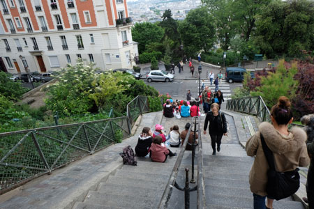 <おパリ(前編)。> はいはい、ボンジュール、チャオチャオチャオ〜! 「しゃちょー漫遊記」の長旅から帰ってきたら もう6月になっちゃったにっちわ〜っす。 「しゃちょー漫遊記」中継の様子は こちらをご覧いただくとして。 先週は、エルバ島で、 よわ〜いインターネットを駆使して ひーこらひーこら写真をアップしていたのだけど、 もうだいじょうぶ! ただいまニッポントーキョー! やっっぱりヨーロッパとはぜんぜんちがう国。 でも、やっぱりほっとするわ〜。 こいつらもいるしね! 会いたかったよぉおおおおお。 帰るやいなや、真夏日の東京では、 暑いから、あんまり近寄ってこなくて、 そっけなくて、悲しかったとです・・・。 のわりには、急にめずらしく寄り添ったりして、 ねこって、気まぐれないきもの! そこが、好きっ! 今回は、おパリ編をちょいと色々(どっちやねん!) お見せするですわんね。 まずはパリではほとんど高層ビルがないのだけど (行くまでは知らなかった!) その中でも、珍しい高層なホテルの 部屋からの眺め。 屋根ってこんなふうになってるんだね〜。 日本とぜんぜんちがう。 趣あるなぁ〜。 そして、マルシェのレタスの生き生きっぷり、 わっしゃ〜〜〜におどろき。 かぼちゃにまたびっっくり。 かかかかかぼちゃの種のプライドって・・・! まさか、一緒に育ってきた実から、引き離されて その座をパセリにうばわれるなんてな! 乾燥防止みたいな意味だと思うのだけど、 これはびっくりしたなー。 よくあること?? パリも、どこをとっても、絵になる! エルバとはまたちがった感じだけど、とてもステキ。 こっちはやっぱり、都会だし、 気分がちょっと気取っちゃうかも。 みどりも、豊富だし。 サクレクール寺院は、超「アメリ」だしさ〜〜。 バブーも一生懸命おのぼるのよー! サクレクールでは、めずらしい光景を目撃! 写真の真ん中に注目! なんと! ガーゴイルの上にひとが! さらに真っ黒い水を 口からレロレロレローーーーー。 頭に穴があいてるみたいで、 そこに泥水がつまっているのを、 棒でかき出してたのでした。 ひー、めずらしいもん見た! サクレクールでは、遠足のこどもたちが 階段でランチ。かわいい〜! 思わず、写真を撮っていたら、みんなが 手を振ってくれたぜ! 「おのぼりさん」ってバカにされなくて よかった〜。 ランチ時におじゃまさせていただいた、 「MY LITTLE PARIS」では、 オフィスがいちいちおっしゃれ〜で、 かわいくって、たまらん!! ▲映画に出てきそうな螺旋階段。 ▲女子力高くて、まぶしっす!キラッ! 社長室も、かんわい〜〜。 Kanakoさんの絵が、またかわいいのです。 こんなところにまで、絵!キュン!女子!キラ! 一同で 「Kanakoさんの仕事量がものすごい」 と話していたけど、こんなところにまでとは・・・。 あとわたしアンテナがキュンキュンしたのが、 この壁! きゃんわゆ〜〜〜〜! 古いフランス映画(だと思う)を プロジェクターで映している壁が、また手描き。 うう、かわいい。ブルっとする。 こんなお家に住みたいわ〜。すてき〜〜〜。 家具も、蚤の市で買ってきたものとか、 アンティークなものを、 ナウく女子的に取り入れていて、かわいいわ〜。 とにかくどこをとっても絵になるのだ! キラッキラ。 うっかり自分もキラキラしたんじゃないかと 勘違いしてしまうほど。 あ〜、もうお見せしきれないので、 また来週に続けちゃってもよござんすか? おフランスざんす〜〜〜! 時差ボケ、負けへんでぇ〜〜〜! (つづく)