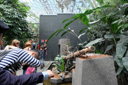 <おパリ(後編)。> やあやあ。16周年おめでとう、ほぼ日&俺! やー、16歳かあ。 自分が16歳のときに「ほぼ日」と、 この連載が始まったからねぇ〜。 そりゃあ、としもとるわけですよ。 っていう話を、毎年しているね。 そういうものです。 で〜、先週のおパリ編の続き、いっちゃうよ。 おパリは、色々おのぼりに行きましたが、 やっぱりびっくりしたのは動物園。 6年かけて240億円かけて改修したのに、 オープン日に色々間に合ってなくて、 動物がぜんぜんいなくて、市民が怒った! という噂の動物園。 どうやら、動物たちのストレスをできるだけへらすように、 密度を低くして、広くして、 自然に近い形にするようにしたんだって。 たしかに、とっても広い。 なんか広くて豪華。 「ひとだかりが!」と思って行ってみると、 じみ〜な、陸ガメだったりとか。 (陸ガメかわいいのよ、かわいいんだけど、 人だかりができてるっていうのが、意外でさ!) 動物どこー?? これは・・・なに? 答え:アリ! ガーーーン。 斬新! おーい、動物どこーーー? しーーーーん。 だれー!そこにいるっぽいけど、だれなのー? あ!なんかいる! と思ったら・・・ ねこ! これは、あきらかに、エサをあげてる、自由なねこちゃん。 へ〜〜。ライオンとかのところに 入っちゃだめだよ〜。 もちろん、いろいろ動物は見れたけど、 日本の動物園とはまったく別の施設に思えたよ。 展示の仕方が、いままでの常識くつがえされた〜。 ぎゃふんっ。 でも、動物たちにはいいよねえ。 ところせましと、動物がいるより、 暮らしやすいんだと思う。 しかし、なんで短い滞在で、動物園に行くねん! と思われるかもしれないけど、 そんなに長い時間かけて改修したなんて、 一回見てみたいじやんっ。 動物園で目をこらして動物を探すなんて、 新鮮すぎて、自然を感じながら、いい思い出になった。 そして、わたしが気になっていた、なぞの施設 「アラブ世界研究所」。 その名前がまず不思議だし、建物がすごいらしい、 とガイドブックで見つけて、見てみたかったんだけど、 もーすごい! すごすぎる! 太陽の光を受けて、この穴が自動で 大きくなったり、小さくなったりするんだって。 なんじゃそりゃー。 上からの眺めもいいらしいので、覚えておこう。 進化大陳列館も、やっぱりすごくて、 日本の展示とはぜんぜんちがって、おもしろかったー。 なんせ、みんなまーさわるさわる。 おさわりしちゃうんだもん。展示品に。 おさわりできちゃう展示だし。 ふしぎね〜。 ヒョウの展示の仕方が、かっこよかった! なんだか、ドラマティック。 そしてそして、車の中から見えた、 なんだかかっこいい収集車。 みなさん、なんでも絵になりますなあ。 パリもエルバ島も、日常とはかけ離れていて、 とても「旅」満喫しちゃったわん。 きっとまた行けることを、祈るぞお。 おパリは、アパートみたいな部屋を借りる人とか いるけど、それもいいなぁ。ほほほ。 さて、今週のお2匹さん。 だんだん暑くなってきて、毛皮族のお2匹さんは 暑そうだけど、元気にやっています。 あいかわらず、うるわしゅうな感じだし、 ぶっちゃいし。 やけに活発だけど、そのおなか・・・。 これでも、前よりはやせたのよ・・・。 さあってと。 今週も梅雨には負けないぞェでがんばろー!うぉー!