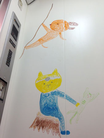 <小学生みたいな夏休み?> 今年もきっと9月も暑いんだろうと思い込んでいたから、 ここ数日、急に涼しさ出てきちゃって、 「夏が終わる!」と、少々あせりぎみになってきた、 わたくしです。 そんなことない? わたしはすっかり、 2014年のわたしの夏を振り返ろうとしている、なう。 でも、振り返れば、今年もまた、たのしんだな〜。 夢の国にも行ったりしたけど、 ミグノンプランのエレベーターに、 絵を描こうということになり、 犬とねこに囲まれながら、 へんな犬とねこの絵を描いたりしてね。 見守る気はさらさらない。お犬さんたち。 ▲仲がよろしい。 おねこさん。 こいつは、海苔を思い出すよね。 あいつ、元気にしてるかな〜? 元気らしいんだけど、会いたいなぁ。 しょっちゅう休憩して、 お犬やおねこをさかなに、おやつを食べて。 なんて夏休みっぽいんだ! あれ!?これが、夏休みっぽいのかな? ・・・夏休みってどんなんだっけ? でもなんか、この状態、のんびりしてて、 夏休みっぽくない? エレベーターに閉じこもって へんな絵を描いて、 犬とねこにちょっかい出して、また再開して。 あー夏休み! ためらいなく、描いていく・・・。 たのしい! 小学生のときの夏休みなんて、 おばあちゃん家とかで、ひたすらのんびりで テレビ見て昼寝して、起きて、お漬物をおやつに食べて、 またゴロゴロしたり、 ときどき宿題やったり、おしゃべりしたり、 ちょっと散歩したり。 そんなだったけど、ちょっとそれに似た感覚だったかも。 なんだろう? このエレベーター、どこかの児童館みたいな感じ・・・? お客さんや、ボランティアさんが 笑ってくれるといいなぁ。 あとは、いつもなかなか行けない、 百貨店の展覧会に行けたりもしたー! だってこれはぜったいに行かねばならないよ、 「さくらももこの世界展」! 自分が小学校3年生のときに、アニメで 小学校3年生の「ちびまるこちゃん」が始まったから、 一緒に育ったようなもの! いつのまにか、 自分が32歳で、まるこは永遠の9歳だけどね・・・。 こんなに差が開いてしまうとは。 ▲仲間に入れて、すごくうれしい! でもこれよく見て!顔を出すだけで、 いわゆる顔出し看板のように、 誰かの体になるとかじゃないの。 あくまでも、穴から、顔を出すだけ・・・。 もう、原画の数々がたまらなくて、たまらなくて。 ちびまるこちゃんや、コジコジやら、 昔のデビュー作やら、色んな原画の数々。 初めてたくさんの原画を見て、 自分が子どもの頃には「そういうもの」として ただ見て、感じてなかった、 わ〜これ色鉛筆だ!?これは絵の具?? これ、こまか!なんじゃこりゃ、こまかー! おもしろー! この一枚に、何時間かかったんだろう・・・。 って、すっごい近くで見たりして、エンジョイしちゃった。 改めて見ると、細かくてかわいくて独特で感動だわぁ。 たまらん。 まるちゃんゾーンから、コジコジゾーンに行ったら 内容が急に大人っぽくなって、 毒要素が増えて、ニヒルな感じを のびのびと出してるのが、よくわかったりね。 や〜堪能ぉ〜〜〜〜。 物販コーナーでは、小さいポスターを買っちゃったのだ! 額に入れて飾ろう。ふふふ。 そのついでに、たまたま東京駅でやっていた、 ウルトラマンのフィギュア展みたいなのにも立ち寄り、 とりあえず、顔出し看板を探す。 ない。 では。マントをひるがえし、ポーズ。 ウルトラマンって、ぜんぜん見てないんだけど、 敵がすごい、いい! ▲へんなやつばっか! なんだその梅干しみたいな口。 ▲おじさん、だれ? また梅干しだし。 いいなぁ〜。 まったく無知じゃないけど、 思わず、欲しくなっちゃうくらい。 ちょっと色々知りたくなった。 や〜そんなこんなで、 他にも色々したけど、家でマリオカートをやったりもして、 小学生の夏休み風だった、めずらしい日々だった〜。 そういうときがあってもいいよね。 ね。 ▲しーん。 ね。 ▲ちーん。 ね。 ▲し〜〜〜ん。 家にもわりといれて、お2匹さんと長い時間 過ごせたのも、よかったわ。充電充電。 さ、もう、8月最後の1週間、エンジョイしようずぇ〜い!