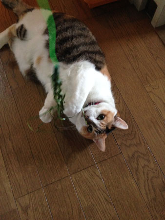 <静電気とか、貼り紙とか。> ほらほら1月ももう後半突入にちわーっす。 ひじょうにサミュい(寒い)けれど、 雪まではいかないなぁ。 2月になったら降るという噂もあるよね。 こういう噂は、こうやって口に出しておくと、 「やっぱり降ったね!」ということになったとき、 ちょっとした預言者のように、錯覚されることもあるので、 あえて、どんどん書いていこう。 「降らなかったじゃーん」となっても、 預言者の予言がはずれた。ということにはならないから、 ちょっぴりお得ね。 KISETU NO NAYAMIといへば、静電気。 ねこがいるからなのか、 最近静電気が気になるお年ごろ。 前の冬よりも、ぜったいに強いよ。そう思いません? ウチだけ?? ねこをなでなでしてると、うすーい静電気が わたしの手とねこの間に、ずっとあってさ。 毛も、ふんわりと手にひっつく! これって、ねこらは、どう思ってるんだろう? 「ああぁ、イヤだなー。この季節は、イヤだわー」 って思いながら、まぶたを閉じてなでられているのか、 なんとも思っていないのか? ▲なでられた後、静電気でボサボサになったミッツ様。 でも、横になってるときに、 牛が上に乗ってきて、鼻先でわたしの顔に ツンッってやってくるとき。 その、ほんのりしめった鼻と、わたしの顔の間に 小さくパチンッとなるときは、 無表情なりに「おぉっ」って顔してるのよね。 で、ツンッはたいてい1回では終わらないから、 2回目も、1回目よりはやわらぐけど、パチンッくる。 そうするとまた、「うぉっ」ってなって。 それが3、4回終わると、パチンッもほとんどなくなる。 というシステム。いやだわー。ほんと。 キーホルダータイプの、触れる前にそれをかざすと、 静電気を除去してくれるやつがあってさ。 これこれ。 触ると、液晶に 「除去してるよー」って表示されるから、 おもしろくて、ねこにもかざしまくってみたよ。 除去できるけど、家でずっと持ち歩くわけにも いかないしねえ。ううむ。 静電気との付き合い方を、考えていきたいわぁ。 この間、お昼時に外を歩いていたとき。 お花屋さんの前に。 長い竹が6本くらい。 「ご自由にお持ちください」という紙が貼ってある。 この貼り紙って、魔物! そんなふうに言われると、使う予定もないのに、 「あ、じゃあ、ありがとうございます」と、 つい持って帰ってしまいそうになる、ダメなわたし! でもさすがに、2メートル越えの竹は、 誰も持って帰らないだろうなぁ。 と思いながら横を通り過ぎて、 スタスタと歩いていたのです。 そしたら、背後から 「わー!どうしよう!」 という、興奮した声が聞こえてきた。 ま、まさか・・・! そう、4人くらいの男女が、 その竹の前で立ち止まっている! いらないよ、きっといらないよ、ね。 ほら、いらないでしょ? と念を送るが、だいぶ盛り上がっている。 この寒い中、流しそうめん大会でも、する予定なのかなぁ? けっきょくどうなったのか、 見届けないままだったんだけど、数日後には、 なくなっていたよ。 ほんと「ご自由にお持ちください」って、魔物だわね。 貼り紙シリーズでいうと、こんなのもあったよ、この間。 12、3回押してください・・・。 あ、貼り「紙」じゃなかった・・・。 はじめは、わーあそこの壁、光が当たって、キレイだわ〜。 と思って、目が止まって、よくよく見たら・・・。 まあ、ほんとに12、3回押すひとはいないと思うんだけど。 陽の美しさと、油性マジック感と、 インターホンの「♪(音符)」マークが、 なんともいえないよね。味わい深いです。 んね、お2匹さん。 ▲食後はいったん、ここで暖をとる。 ▲いようにかわいいけど、影ではジュゴンと呼ばれている。 さ、寒いけど、風邪にもインフルにも 負けへんでぇぁ〜〜〜〜〜〜!
