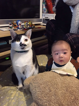 <手のひらをきっかけに。> おいおい、1月も終わるってよ! ICHIGATU NO OWARIですよ。 イチオワだね、イチオワ。 去年くらいから思ってたんだけど、 お風呂からあがって、化粧水とか色々つけてると、 つけるための道具として使ってる手のひらって、 全部を吸い込んでるから、ぷるっぷるだよなぁ〜。って。 え?何を言うの??って思う?よ、ね? でも、ほんとにそうじゃない?? 顔に塗りこむどんなに高いオイルも、 手のひらにのせて、手のひらを使って、塗りこむから、 手のひらって、どこよりもぷるっぷる。 (水仕事じゃないからってのものあるか) でも、その分、熱いものも冷たいものも、 汚いものも、とがったものも、 なんでも、手のひらが色々やってくれてる。 なんだか急に手のひらが愛おしくなったのが、去年。 うまれて初めて、手のひらが愛おしくなった〜。 あたりまえのようにこき使われてる手のひらに、拍手! パチパチパチパチ。ヒューッ! 同じように、当たり前に毎日使ってる足とか、 指とか、耳とか、 1年の中である期間、花粉に負けちゃう目とか鼻とか、 内側の方々(内臓やら、筋肉やら)とかもう、 ありがとうね。いつも、すみませんね。ほんと。 長い付き合いだし、 これからも長く付き合っていくと思うんだけど、 よろしくね、って気持ちに、 手のひらのぷるぷるから、なったよ。 そして、この体のリーダーは、「わたし」。 「わたし」って、どれ?脳??こころ? 急に色々考えていた、近ごろよ。 とりとめもなく、失敬!(てへぺろ) この間、友の誕生日祝いをした後、 みんながそのままウチに来たときのこと。 来て早々に、牛が「いらっしゃいませ〜」と、 お出迎えしてくれていた! ほんと、うちの子はサービス精神と好奇心が旺盛で、 よろこばれるわぁ〜。 自ら、飛び込んで行く牛。 こ、これは、ハーレムや! なんてこった。6人から・・・。 本人も、ぐっしゃぐしゃだけど、うれしそうだし・・・。 されたよろこび、するよろこびの交換会。 すごい時間だったなぁ。 その後も、みんなの輪の中心に、参加。 ▲うしろで支えられてないと、 座っていられない赤さんと、牛。 身長はまだ牛の方が大きいけど、 重さはもう、赤さんの方が重い! おい牛、いつの間にか追い抜かされてるぞー。 赤さんも、ねこに慣れてるし、牛も、まったく動じず。 つくづく、すごいわ、牛ってば。 かわいがられる、得な性格でよかったね。 あ、思えば赤さんは、生まれたときから、 自分の体のリーダーやってて、 自分で自分の体をコントロールしている! 当たり前のことだけど、それもすごいことだなぁ。 こんなのでも、そうよね〜。 ▲自分の意思でわたしの肩の上にのぼって、降りない ミグノンにいるIzuちゃん。 わたしの服に擬態。 こんなのも、自分の意思で、やってるんだよね・・・。 ▲寒いから、近い・・・。 これは、自分の意思?? ▲抱かれて、口元がゆるくて、ぺろっとしちゃってるのは、 自分の意思じゃないかもしれない。 さーさー、寒い&花粉、がんばっぺろ〜ん。 自分の意思とは関係なく、2月がやって来る。