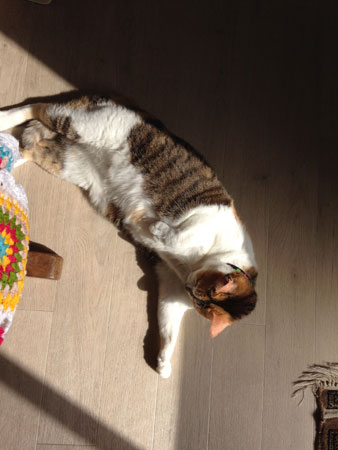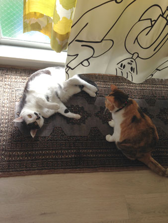 <春だから。> 3月末にちわっす〜〜〜。 なんだか急に早い感じで桜が咲いている、ここ東京。 引越して初めての春だから、近所の探索がてら、 いろいろとお散歩へ行ってみただよ。 すると、やっぱり色んな発見が! おいしそうなお店やら、おいしそうなお店やら、 かわいいお店やら、穴場的なお店やら、かわいい公園やら、 気になるけど、きっと足を踏み入れることはないだろう 奇妙な古いお店とか。 こうやって知らない近所を散歩するなんて、 10年くらい同じ町に住んでたもんで、 ぜんぜんやってなかったから、とっても新鮮だわあ。 新学期の季節だし、なんだかフレッシュウーマンちゃんで エンジョイしちゃってますわ。いいね、散歩! 探索中、桜はもちろん、 ▲お見事! ここここれは・・・!つ、つくし! 牧野つくし!(by 花より団子) び〜っくり。 つくしって、なんだかひさしぶりに見たなぁ。 てゆーか、こんな、マンションの庭部分に、 こんなつくし!つくしづくし! まぁ、春ですわぁ。 そうそう、この間、 「なんかベランダを黒い影が通った!」 と言う、客人チー坊。 「え?え?」 春だから?見まつがい?? ベランダを見てみると、なんとまあ! お客様! ねこです。 どっからどう見ても、ねこです。 のらねこっぽくない、ねこです。 窓を叩いたら、めっちゃ怒る! おいおい、怒られるのは、お前だよ! 不法侵入だぞ。 窓を開けようとしたら、走っていなくなったよ。 そのあと、10分くらい経ったら 「あ!また来た!」 と言う、チー坊。 うわ!また来た、あいつ。我が物顔で。 「お前ら、ジャマすんなよ!」 と言わんばかりに。・・・どっから来たんだろう。 おとなりさんは犬を飼っているので、 そのおとなりさんの家の子か、はたまた別の家の子か。 ななな謎すぎる!春だから? お前〜、遠くに行っちゃダメよー。気をつけてね。 あんなんで、どっか行っちゃったらどうするんだろうなぁ。 うちのお2匹は、お出かけもせず (ミグノンとの約束で、絶対に外に出しちゃダメなのだ)、 晴れていれば、部屋の中で陽をめいっぱい浴びて、 じゃっかんオーバードーズ気味。 ▲春だね・・・。 あったまりすぎると、フローリングの床で、 クールダウン。 ▲いまでこれだと、先が思いやられる。 あと春と関係あるようなないような、 最近お2匹が仲が良いというか、 ちゃんと遊べている感じがするんだよね〜。 前は、牛がちょっかいを出して、ミッツが怒って、 おしまい。はい、終了ーーー。 だったのに、 最近はミッツもちょっと対抗して、じゃれて、 追いかけっこがちょっと続くようになったのだ。 卓球とか、テニスが、サーブですぐ終わっちゃってたのに ラリーできるようになってきた感じ。 いいじゃ〜ん、お2匹さん。 やっぱり春だから、だね。 冬が終わったんだなと改めて感じる。 春よ、来たよーーーーっ。 とまあ、何の変哲もないおそまつな日々ですが、 来年度も、よろしくどうぞ〜〜〜ぉん。 フレッシュフレッシュヤッホーヤッホー。