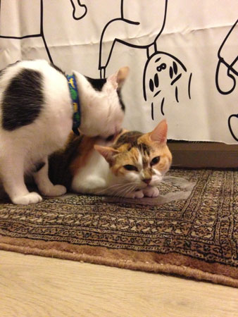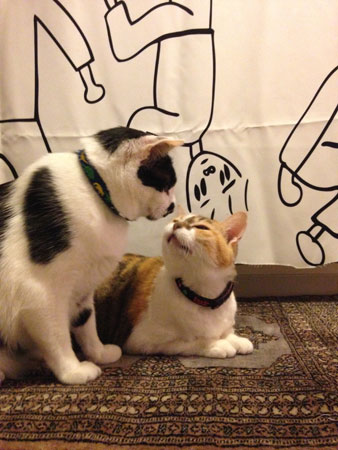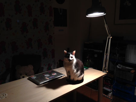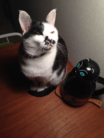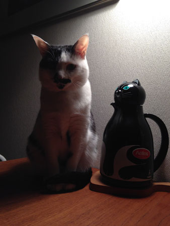 <負けへんでぇ!> なんかもう、あれじゃん? ゴールデンウィークも、すぐじゃん!! なんじゃいーーー!なんじゃいーーーー! こんなに寒かったりするのにねぇ。 みんなは、どんな行楽するのかしら? 先日の、夜。 青山通りを歩いていると、 前からサングラスをかけて、地図を見ながら、 ちょっとおぼつかない感じで歩いている、外国人さん。 よく言えば、サングラスでのおかげで「マトリックス」の キアヌ・リーブス風になってる感じの、 ちいさいおじさん。 すれちがう瞬間に、ちょっとブツブツ、 こっちを見ているような気もするけど、サングラスだから よくわかんないけどなぁ・・・と思いつつ、 このへんは観光客が多いからね。 お困りなのかしら?と思って、 「May I help you?」 って聞いてみたらば。 「ココナニアリマスカ?」 あら?まさかの日本語! 「え?表参道ステーション」 と、教えてあげたら〜〜〜。 「アナタ、ナンサイ?」 え!?なにこの人。 「は?32歳ですけど・・・」 あまりに急な展開でおどろきすぎて、 1才サバ読んじゃったよ。 「ドクシン?」 コラーーーーーーーーー! 人がやさしく助けてあげようと思ったのに。 「独身じゃないです!」 すると、無言で去ってった・・・! なんやね〜〜〜ん!傷つくー。 てゆーか、いまだに「独身じゃない」って言う自分が、 まったくなじんでいない、俺です。 それはまた、別のおはなし・・・。 落し物を拾ったときとか、 電車で席を譲ったときとかに、 相手の反応で、逆にこっちが傷つくことって、 時々あるね・・・。 ちきしょー!ま、負けないけどよぉ! こういう時は、スポーツをして、発散だ〜。 ゴールデンウィークは、スポーツしよっと。 うん、そうしよう。 さ、お2匹さんですが。 深夜、ふと後ろを振り返ると・・・ ひぃいいい!どっちがポット? ていうか、こわいよ!きみ! あら? そ、そのまぶしい顔・・・。味わい深い。 最近、ここにいることが多いんだけど、 この方、どうやらライトが大好きみたいでさ。 いように、かっこいいじゃん!! 夜になると、暗闇でひとり、ピンスポットを浴びている。 もしかして、あったかいのか? ぜったいそうだな、こりゃ・・・。 ねこって・・・なんなんだろう・・・・ 色々、役にはたたないけど、いるだけで、OKよ。 毎日、ありがとう。 じゃ、今週も、よーろーしーーーーくーー4649ー!