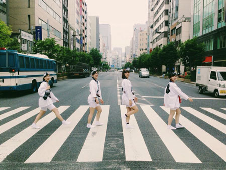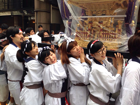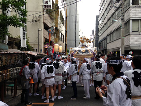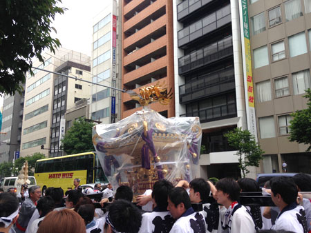 <神田祭でお神輿!> 期待が高すぎて、使ったらイマイチだなぁ。 と思っていた、ノリ付の綿棒を、ひさびさに使ってみたら 自分でハードルを下げていたおかげか、 すごくいい!ってことで、ゴキゲンなわたしです。 ふふふ。 週末には、2年に1度ある神田祭の中の、 神田明神氏子祭礼・竹森神社例大祭でというので お神輿を担がせてもらえる!ということで、 参加してきたよおおお。 お神輿といえば、子どもの頃に、 友だちの家の近所のに参加させてもらって、 かついでは、休憩所でおやつを食べて、 かついで、おやつ、かついで、おやつ。 のループだった思い出。 つらかった思い出は、ない。ような気がする・・・。 あと、大人でお神輿が好きな人が、 毎年、神輿に命かけてる!っていうイメージだった。 あとは・・・ふんどしとか? どんななんだろう。ドキドキ。 まず、半股引の履き方がまったくわからなくて、 出鼻をくじかれつつ、 着方を知ってる子に教えてもらって、なんとかなった。 ▲女子チームの記念ぐずぐずABBEY ROAD。 いざ、集合場所へ出発。 足袋の中に靴下を履いてみたけど、 足袋でアスファルトって、なかなか痛いんだ。 日々の、靴に感謝じゃのぅ。 集合場所に行ってみると、 基本は、町内のやつだから、おなじみの人たちが集う中に、 おなじみじゃないわたしたちが おじゃまさせていただいている感じで、不安いっぱい。 ふんどしの人もチラホラ、ふんどしに裸足の人まで! ひえーーーーっ、本気だ。本気と書いて「マジ」なやつや。 お、大名行列みたいなのが始まった! おおおお! お面さん登場! 馬も! 公道で馬を見ると、テンションがあがってしまうのは わたしだけじゃないはず。 お馬、いいなぁ。かっこいいなぁ。 よく見えないから、階段にのぼった方が見えるね。 なんつって、階段にのぼって見ていたら、 「降りて!上から見ないで!」 「今は、頭のハチマキ、はずして!」 と、ベテランさんからご指摘を受ける。 ああああぁすみません。無知ですみません。 ただでさえ、おなじみじゃないんだから、 あまり、目立たないように、と思っていたのに・・・。 この行列は、神田明神からいらしているそうで、 通る人がそれぞれ「ありがとうございます」と言いながら、 お通りになるのを、 みんなで、おじぎをして、ごあいさつをする。 そういう決まりみたい。無知ですみません。 お天気が雨かもしれないということで、 お神輿には、残念ながらビニール袋がかかっていたけど、 いざ、開始! ひょー。 ほとんどが男の人だ。女が入ったところで、 肩の高さが合わないし、入ったら逆にご迷惑で、 きっと出番ないんだろうなぁ。 なんて思っていたけど、1回目で 「はい、そこのあなた」って、かついでる途中で 横でコーチみたいな役の人に、指名されて入ることに! やっぱり高さが合わなくて、肩では担げないんだけど、 背伸びをして、腕を上にあげて参加をする。 ここでものすごく不思議なのが、 そんななのに、ツラいということ! 腕をずっと上にあげてるというのは、ツラい。 ライブなんかでも、ツラいもんね。 しかも、なおかつちゃんと重い。すっごく重い。 なぜだ! 10分くらい?わりとすぐに、1回目の休憩所に。 ここではおそばとビールが振る舞われる! なんだ〜こんなにすぐ休憩が来ちゃうの? じゃあやっぱり楽勝かあ。 しかも、休憩は何度もあるらしいからね。 女子の出番はあんまりない(さっきまでは まったくないかもとも思っていたけど、そこは訂正)上に、 すぐに休憩で、きっと1,2時間で終わるよ。楽勝だ! なんて思っていた俺・・・。 ちょっとやったことで、もう腕の乳酸が爆発状態、 プルプル震えるわ、腕を上にあげられないわ・・・。 これはやばいかもしれない。 何度かちょいちょい加わって、 休憩までの間隔が広くなり、やや暗雲たちこめる俺たち。 でも、休憩の度に、唐揚げやら、サンドイッチやら、 飲み物やら、色々出てきて、たのしい〜〜。 たのしいムードの中、 「大通りに出たら、女神輿の時間らしい」という噂が。 おー女神輿かあ。いいね。肩の高さも合うしね。 でも、どう見ても、今日は女の人の方が少ないし、 どうなの?だいじょうぶなの?? 20人もいないくらいだよ、女性って。 でも、やったるでー!と気合いマンマン。 数ある休憩の中で、一番の人気ポイントらしい、 お肉屋さんのコロッケ食べ放題が出たところで、 「はい、じゃあ女神輿、お願いしますー」の一声。 きたきた、よーっしゃーーー! あ、あれ?すっごく重い。異様に重い。 これは、これは・・・背がすごく関係してない? 一緒に行ったメンバーの中で、一番背の高いわたし。 これ、わたしにすっごい来てない? 木は肩に乗せて、肩と離れないように、腕を巻きつけて! 膝を柔軟に! とか、色々言われるんだけど、 もう何をしても、めっちゃくちゃ重い、痛い。 あーこれ、痛いなぁ・・・。超痛いなぁ・・・。 男性がいない分、進みもめちゃくちゃ遅いし、 まっすぐ進めないし。 周