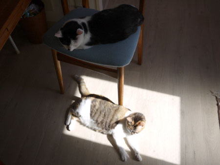 <マスク展。> 神輿ダメージがやっととれた、わたしである。 やっぱりあの日の女神輿のつらさは、 尋常じゃなかったんじゃないかと思っておる。 まあ、それも、いい思い出よ。 少し前のことなのだけど、晴れた休日、 白金にある東京都庭園美術館へ、初訪問しまして。 今回、行くきっかけになったのは 現在開催中の「マスク展」。 お面(マスク)だけの展覧会って、どんなだろう? しかも場所は、「庭園」で「美術館」だなんて、 うっとりしちゃうに決まってるじゃない! 入り口でチケットを買っていると、 隣のチケットカウンターから 「ドレスコード割引になります」という声が聞こえた。 あぁぁぁ!そうだったっっ! 「マスク展」だから、仮面をしていくと、 100円割引になるんだった!忘れてた〜〜〜。 仮面忘れた〜〜。くやしー! でも、隣の人は、仮面をしているわけではない。 どうやら、動物がプリントされたTシャツで、 割引が適用されている! なぬー!それでもいいんだ! 顔のついてる服を着てればいいんだって。 は! でも、今日に限って、目鼻がついた服を着ていない! わたしのクローゼットは、無地のものを 探すほうがむずかしいほど、目鼻ものだらけなはずなのに。 今日に限って!くやしぃぃぃ〜〜〜! いっしょに行った夫は、 たまたま動物のプリントのTシャツを着ているから、OK。 あ!待って! 持っていたバッグに、もろ目と口がついている。 「こ、これでどうですか!」 「あー・・・OKです」 ちょっと間があったけど、いいか?やったー! なんだか、達成感。 ▲コンゴ民主共和国のキフェべ仮面のポスターの前で、 グリーンランドのアザラシの革でできた仮面の ポストカードを、まとって。 展示されているマスクに、それぞれどこの地域の、 何用のマスクかの説明が書いてある。 アフリカのどこどこの結社の儀礼の時に、 地位の高い男性がかぶる用、とか。 メキシコの村のえらいひとの葬儀のときに 女性がかぶって、踊る用、とか。 税をおさめるとき用とか・・・。 それぞれおもしろい〜。 マスクはちゃんとしたことを言えば、 マスクをするのは主に、自分の存在を消して、 精霊になる用なんだって。 ま、色々なマスク論があるらしいのだけど、 それはそれとしちゃって。(しちゃうんかい!) わたしが見てきて言えることは、まったく小難しくなく。 おもろ!ってこと! 日本の能面とかってちょっとこわいと思うんだけど、 そこに展示されている外国のお面のほとんどは、 ものすごくひょうきん! 「そんな大事な儀式用が、そんなところから、 毛がボサっとなってて、いいんかい!」 とか、ツッコミいれちゃう。 でも、能面も外国の人から見たら、ひょうきんなのかしら? 般若とか・・・いやー。こわいよね? おかめとひょっとこは、ぜったいひょうきんだけどね。 どうなんだろう。 これはヤギっぽい、とか、人っぽいとか、 なんかわかんないけど、目鼻があるとか、 目鼻あるんだけど、目の穴が開いてないとか、 色んなのがあって、 「ドレスコード割引」は、 「マスクとは、目鼻があるもの」という定義で、 割引を作ったんだなぁ。なんて思いましたよ。 あ、そうそう、あと、顔に取り付けるとは思えないほど、 長いものもあってさ。 3メートルくらいタテに長いものとか、 顔、どっから出すんだ?ってくらい、 わけわからないものとか、 ほとんどのお面が、裏側まで見れるから、 そのお面をつけるときの気持ちになってみたりして、 とにかく、たのしいー! 「あのへんなお面をつけて、奇妙な動きとかして こどもをこわがらせたりしたいわぁ」 とか思っちゃうんだけど、 もしかして、みんなそう思って作って、 使ってたかもしれないし。 持ち主たちも。 作ってる人も、 「見て見てー、すごいへんなやつ出来たわ〜」 「いや、おれのやつのほうが、ふざけてる自信がある」 なんて、競ったりしてたかもしれないし。 してないかもしれない。 もっとまじめかなぁ? いや〜、とにかく笑ったわ〜〜〜。 しかもさ、この美術館は、元宮家であり、 首相官邸であり、迎賓館であり。な場所だから、 静かで、もう、空気が高貴! がゆえ、あんまり笑っちゃいけないから、 笑いがこみ上げてくるのよねえ。 いい季節だから、庭園も気持ちがいいし、 ぜひ顔がついた洋服で行くをオススメするあるよ〜。 あ、そういえば、鹿児島にロケットの打ち上げに行った時に 霧島天狗館というところに行ったときのことを 思い出した! ▲これもある意味、マスク展。 さ、おtwo catsさんですけれども。 きょうもげんきだ、太陽がうまい。 ↓ ▲順番制。 しゃ、こんしゅうも、いってみよう〜。