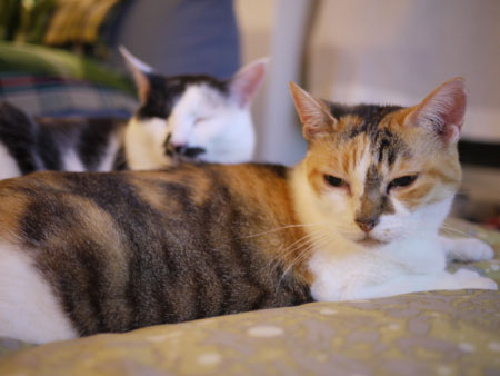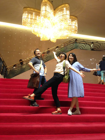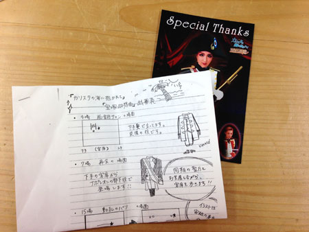 <初・宝塚観劇。> パンパカパ〜ン、ほぼ日17周年おめでとう! 「ゆーないとさん」としての人生も、 いつまにか折り返し、 「ゆーないと」の方が長くなってきちゃいましたもんね。 どっっひゃー。 まさか、こんなふうに長く続くとは、 何も思っていなかった、16歳の俺も、みんなも・・・! お付き合いいただいているみにゃさま、 ありがとう、ありがとう!ありがとうございます。 これからも、よろしくお願いしニャす! さてさて17周年だからと言って、 ここに何か特別なことは起こりません。 いつもと同じように、過ぎてまいります。 女子校育ちがゆえ、共学の子よりも、 きっと多い人がハマっていた宝塚歌劇団。 「◯◯さん、カッコイイ!」 と言いながら、みんなでお泊りして、 宝塚ビデオを観る会をやったりしていた人も多かった。 ミュージカル部の発表では、宝塚で使われる歌を使ったり、 その歌を替え歌して使ってたりするから、 関係ないわたしも、歌は覚えちゃう。 だけれどだけど、本物の宝塚は観たことがない! いつか観ると思ってたんだけど、どういうわけだか 観ないでここまで生きてこれてしまった。 でも、気になる。 宝塚と言えば、「ベルサイユのバラ」的な ゴージャスな髪型とか衣装を想像しちゃうんだけど、 「ルパン3世」のポスターを初めて見たときの衝撃! 「なんかふつう!」 そういうことも、あるんだね。知らなかった〜。 あと、「オーシャンズ11」のポスターを見たときの衝撃! 「現代すぎる!」 やっぱり色々気になる・・・。 いつか、いつか、行かねばならぬと思いながら、 生きてきた、ここ数年。 そこにある日、びっくりニュースが飛び込んできた。 「ぼくの姪っ子が、100期生で宝塚に入ったんだ」 という人物、現る!それは・・・ほぼ日・べっかむ3。 あの、ほがらかなべっかむ3と、宝塚。 どう、ひいき目に見ても、直線ではつながらない・・・! けど、それはすごい! これはもしかして、ついにわたしが観に行く チャンスじゃない??やったー! 「今度、姪っ子さんが出るときには、 ぜひ誘ってください!」 とお願いをしていた。 そして、ついにその日がやって来た〜。 観に行った演目は、花組公演 「カリスタの海に抱かれて」。 入り口には、赤いじゅうたんの、階段。 ぽいーーーぽいぽい、宝塚っぽい! せっかくなので、3人で記念写真。 ▲ぽくない。 伯父さんが、会社の人たちと行く。ということは 本人(一之瀬航季さん)に伝わっていたようで、 こんなものが用意されていた! サイン付ブロマイド! と、シーンごとの自分の位置を書いた出番表。 しかも、手描き!のコピー。 そこですっかり、親心みたいな気持ちになっちゃった。 オペラグラスを借りてくれた、べっかむ3伯父さん。 まだ組に入ったばっかりだから、 わりと大人数が出てくるシーンになると、出てくる。 そういうシーンになったら、もらった出番表を確認して、 オペラグラスで探す。 端から端まで、全員の顔を観る。 オペラグラスで探してる時間は、手が揺れると酔うから、 揺れないように、慎重に探さないといけないので、 けっこう真剣。 「お、いたいた!いいねいいね」 なんて思いながら、オペラグラスから目を離したときには ストーリーがわからくなっていることも、しばしば。 それでも、生の宝塚を味わえているし、 遠くない人が、いま目の前の舞台に立っているんだから、 良しとしちゃうよ。 いつもそうなのかな、前半はミュージカル劇があって、 後半はさっき劇をやっていたのに、また歌いながら、踊る! わたし的にはこの後半が、感心しちゃった〜。 後半の方がボリュームもあったような? とにかくMCタイムはないから、 曲と曲の間は、ほぼゼロで、ひっきりなしに歌う、踊る。 歌は、ふつうの人たちでも耳にしたことがあるような、 ポップスソングを替え歌にして歌ったりとかしてて、 初めての人でも、楽しめちゃう感じ! あと、例のあれですよ。羽根の後光みたいなやつ? あれが、思ってたよりもボリューミーで、 すずしい顔してるけど、ぜったいに重い! あれを背負って踊るとか、ありえないわよ! あと、あの例の階段ね、あれをさ、 足元を見ないで降りたり、脚をあげたり、 踊ったりするなんて、ありえないわよ! 蒲田行進曲みたいになっちゃったら、どうするの!? ハッキリとした上下関係、実力の世界、 刺激的だった〜。あぁ、すごかった! また、別の組も観に行ってみようかしらん。 あなたたち、何組? ▲ねむいところ、おじゃまします。 牛柄組と。 三毛柄組です。 「わたしたち、 組のトップスターになれるように、がんばります!」 って、ぜったい言ってないお2匹さんなのでした。 じゃ、今週もヨ〜ロレリッヒ〜〜〜!