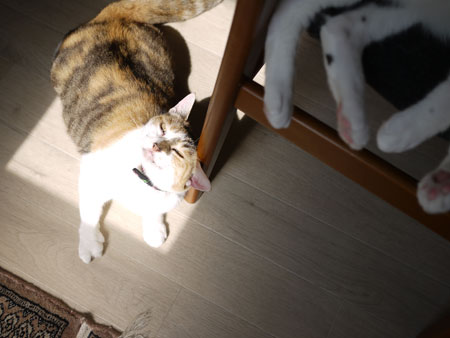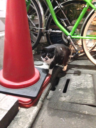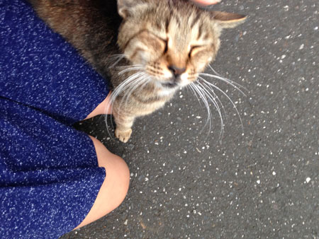 <「猫ストーカー」未満。> 梅雨 TO YOU 梅雨 TO ME。お元気ですかー! わたしは元気ですけど、気圧のせいか、ねむいです。 あ、それはいつもなんだけどね。 いつも以上に、ねむいです。 ねこをストーカーすることを、 イラストレーターの浅生ハルミンさんが 「猫ストーカー」と名づけて 本になって、映画にもなっていたのは、 ご存知? 道で見つけたねこを、静かにストーキングする ハウツー本的なやつです。 「猫ストーカー」をする上での、服装の注意とか、 行動の注意とかも書いてあるの。 わたしも道でねこを見つけたら、 「敵じゃないよ〜安心してね〜。 悪いひとじゃないですよー」 って感じで、姿勢を低くして、そーっと近寄る。 でも、だいたいが、逃げられちゃうのよねー。 前に、家の近くにいる地域ねこ (お世話をしている人がいる野良猫)で、 毎日のように名前を呼んで (お世話してるおばちゃんに名前を聞いた) いたねこがいた。 おなかをだしてくれるほど心をひらいてくれるまで、 5年くらいかかった気がする。 それも、1、2回くらいだったから、 たぶん距離が縮まったんじゃなくて、 ただの気まぐれだと思うけどぉーーーー。 ねこは、警戒心が強い。ことが多い。 ▲ちょっと近づくと、スーッと行っちゃう。 かと思うと、ちょっと近寄っただけで、 すりすりしてくる子もいる。 ▲このあいだ、すりよってきた見知らぬ子。 でも、なんにせよ、ストーキングするのは とてもむずかしい! バレないように尾行するのが、むずかしい! ねこは、自分のペースを乱されたくないから 尾行されているとわかったら、 けっこう逃げると思うのよねー。 追いかけられないくらいまで、逃げる。 車の下とか、建物と建物のあいだとか、 じぶんの家なのかどうかもわからない 塀の中とか、塀の上とか。 たいてい、逃げられちゃって、あきらめちゃうから、 じょうずに、ストーキングできたことはない! すごいなぁ。「猫ストーカー」できる人って! わしゃ、まだまだ修行がたりてまへん。 でもこの間も、なんとなーく、 いつも歩く道からちょっと遠回りにはなるけど、 一本入ってみたい衝動にかられて、 ふいに入ったら、道の真ん中に色黒のねこが、 ちょこんと座って、上を向いていた! にゃにーーーー! その目線の先には、一軒家の2階の バルコニー部分でくつろぐ、ねこ。 その子を、静かに、じーーーっと見ている白黒。 牛と色が似てるから、つい親近感がわいて、 「どしたの〜」って静かに近寄ったら、ハッ! そいつの左後ろにも、ちいさいのが、いるぅーーーー! しかも、物陰から家政婦・市原悦子風に、見てるーーーー。 ハァッッッ!さらに、ちょっと離れたところにも、発見。 合計6匹の家族を芋づる式に発見。 しかもこの子たちも、去勢避妊手術をしてある (耳が切れているのが、去勢避妊手術済みのしるし) 地域ねこで、 そのあたりの家の入り口には 水やら、ごはんが置いてあって、 みんなでかわいがっている感じだったよぉ。よがっだよぉ。 やっぱりわたしのこの発見能力は、何かにいかせると思う。 ▲また別の、白黒。鼻に、人間の鼻の絵みたいなのが チャームポイント。 「猫ストーカー」はできないけど、発見するとろこまでは できるね!それじゃ意味ないか? 「猫ストーカー」に、ねこを斡旋するとか・・・。ないか。 「このあたりに、ねこ、いますぜ」 「あの角を曲がると、上ものがうようよいますぜ」 みたいな感じ?(なぜか悪そうな口調に・・・) でも、迷子ねこを探すとか、そういうことには いかせるかもなぁ。むずかしいかなぁ。どうだろうか。 さて、うちのお2匹さんは。 暑いと、ぐでんぐでんです。 元気にぐでんぐでんで、よろしい! 家の中は、平和や。 梅雨にも、負けないでー!エイサホイサでエイエイオー!