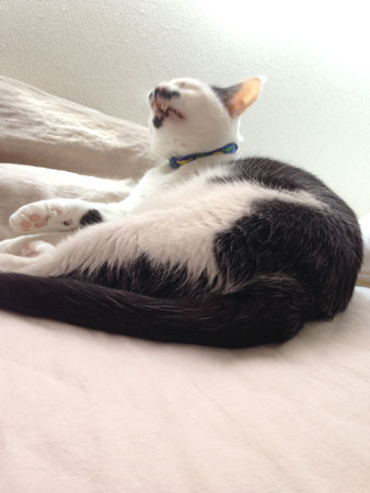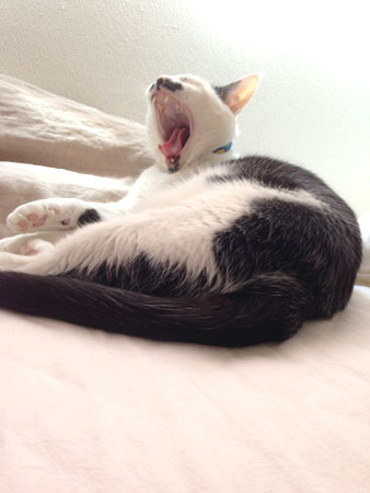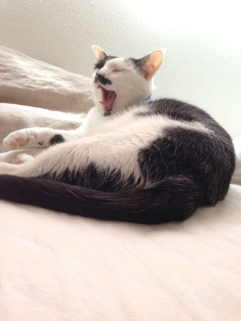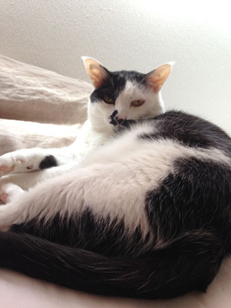 <「かわいい」ってなんだっけ?> もう!6月さよならかいっっ。 この6月は異様なスピードだったズラな〜。 ひーっ。 バタバタしている日々でありながらも、 ちゃっかり少しずつやっている Wii Uのソフト「スプラトゥーン」。 「いちばん好きな食べ物は何?」と聞かれたら、 色んな答えがある中のひとつが「イカ」なわたしが やらないわけにはいかないのだよ! マリオカートをガッツリやってる時期には 車の運転がちょっとマリオカート的になっちゃうし (もちろん超気をつけていますよ)、 いまはイカ中のため、町の建物とか道を見ると ペンキを塗りたくなっちゃう! いま、そういう人、多いのではないかしら!? ちなみにこのゲームは、ざっくり説明すると、 自分がイカで、イカが地面とか壁に ペンキを塗って、自分の陣地にするというもの。 インターネットにつながってて、世界中の知らない人と チームを組んで、バトルするんだけど、 それがすごいわよーーーー! 初代ゲームボーイでは、対戦できるケーブルがあって、 それをつなげてテトリスの対戦に明け暮れた、小学生の頃。 あんまり遠く離れることができず、 すぐ横に並びながら、対戦していたあの頃。 ところが今は、線ナシ!無線で。 横にいる人とどころか、海の向こうの知らない人と。 って! なんなら知ってる人とも、もちろんつながっちゃうし。 すっごいわぁ〜〜〜。 あのね、週末、 ふとわからなくなってしまったの。わたし。 「かわいい」とか「かわいくない」とか わからなくなっちゃったんだなぁ。 枕元にいる、だれた大福みたいになってる牛を 連写していた朝。 ▲朝で、寝起きなので、ふてぶてしい表情。 よくあることだけど、カメラを向けると、 急にあくびをしたりするんだよね。 犬は、ちょっとイヤなときに あくびをするというのを聞いたことがある。 ねこは、わからないけど、 なんか意識しちゃうと、あくびが出るのかもしれない。 いまこうして、キーボードをカタカタとしている、わたし。 「あくび」と打ちながら「あくび」を想像しただけで、 「あくび」が出たよ! 数行前に打ったときにも出て、いまも出て、 すごいかもしれない!!!!!大発見かもしれない! 「あくび」は見ると伝染するのは知っている。 電車の中にいる、赤の他人の人のそれも、 見ればちゃんと伝染する。 それはわかってる。 でも、「あくび」と文字をタイピングしただけで、 出ちゃうって、はじめて知ったわよ! 15年以上パソコンでタイピングをして来てるけど はじめて気づいたかもしれない。 わーびっくりした。 ちょっと、今度やってみて? 読んだだけで出たら、それもすごいよね。 わーすごい。「あくび」がすごいのか、 わたしがすごいのか。ほら、また出た。 (読みなおしているときも、ちゃんと出たぞ!) うひょーーーーーー。すごいよおおおおお。 そうそう、脱線しましたよ。 牛がまあ連写中に、「Aくび」をしたのよ。 (ちゃんと打つと出ちゃうから、 イニシャルトークにしてみました。 あ、イニシャルなら出ないかも) その連写は、だいたいうまく撮れてなくて 「わあ、かわいい!」ってやつは、たった1枚だった。 「あぁ、どれもかわいいけど、 すっごくとびっきりかわいいの1枚あったわ〜」 と、ほくほく安心しながら、ふと思ったわけです。 これは、わたしにとっては とびっきりかわいいと思える1枚の写真かもしれないけど、 みんなにとってはどうなの?? 牛をかわいいと言ってくれるひとはたくさんいるし、 わたしもかわいいと思ってるけど、 やっぱりかわいくないんじゃないか?うちのこ。 や、味わいのあるかわいさなんだけど、 わたしはもはや、味わいとかじゃなくて、 ふつうにかわいいと思ってしまっている。かもしれない。 それでいいんだっけ?あれ? 牛のことを 「だんだんかわいく見えてきた」って言う人も、 いるしなあ。 いいのか。 ああ、「かわいい」って何だ? こころが動けばいいのか? 急にわかんなくなっちゃったのでした。 まあ、これからも、自分の心に正直に、 こころが動いたものを、お伝えしていくでございます。 じゃあ、その1枚だけ撮れたかわいいやつを。 どぅどぅ? 「Aくび」で顔がくずれる(失礼)直前。 ちなみに、ほかのだめなやつは・・・。 こんなんとか。 こんなんでした! やっぱりいま改めて見れば、 1枚目にお見せしてるのが、かわいいわ。 どうですかミッツねえさん。 ▲「いんじゃない?」 左手の前にある黒いものは、牛のしっぽです。 そっすか。 ま、きみたちのおかげで、毎日たのしいから、オッケーよ。 何してても、いいのよ!(噛む以外) かわいいぞ、お2匹さん。 わたしは毎日、心をmoveされているよ。 ではまた7月に会いましょう。 夏が来るーーーきっと夏が来ぅるぅぅぅぅ〜〜〜〜〜〜。 ザキヤマはこないぃいいいぃぃぃぃぃ。