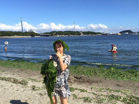 <あおさの味噌汁の海。> 夏!いってしまうの? 来るもの拒まず、去るもの追わず・・・ ってわけにもいかない!にちわ! 2015年の異様な暑さの夏は、あんがいあっけなく いってしまうのでしょうかねぇ。 毎年恒例の「ほぼ日手帳」の発売も近づいてきて、 8月が終わる感が、まんさいな日々でございます。 今年は夏に、ちゃんとお祭りとか、ちゃんと花火とか、 ちゃんと海水浴とか、プールとか行けなくて 夏らしい遊びをあまりできなかったので、 あわてて、無理やり、海へかっ飛ばした8月末! 行ってみたら、海があおさのお味噌汁だった件・・・。 これ、あおさだよね??わかめじゃないもんね? あおさかー。もう、ぜったいこれお味噌汁じゃんーーー。 こどもは、あおさを集めて、山を作ったりしている海岸。 泳いでも泳いでも、足にものすごい量の あおさがからんで来て、ちょっと・・・どうなんだ! ずっと足がつくほどな浅瀬の海では、 あおさを投げ合って遊ぶくらいしか、できない。 あさせで、あおさ・・・。 まさか自分が、ひたすら、あおさ投げをする日がくるなんて。 誰が想像していたでしょうか。 あおさをたくさん集めて、抱えてみたものの、 持って帰るってわけでもなく。 帰りに行った、近くのスーパー銭湯の売店に 「あおさ」系のお土産がたくさん売っていたから、 やっぱり、あおさだ! あおさ、好きだけど、とりあえず、おなかいっぱいっす! あおさ、もういいさ。 映画「MAD MAX」が、いように癖になって、 何度も映画館に足を運ぶ人が多いみたいで、 まわりでも、複数回行ってる人が多いのよねぇ。 もう、あれは、ただ、ストレス発散! ストレスっていうか、興奮をエンジョイする感じ? ジェットコースターに乗るとか、カラオケに行くとか、 そういうのと同じなの。さらに、くせになる。 立川の映画館・シネマシティでは、 いろんな映画が「爆音極上上映」っていう企画で、 その映画館で上映する用に、音を調整して、 より、迫力が出るようにしてあるプログラムを やっているんだけど、 それの「MAD MAX」が、もんのすごいという 評判を聞きまして。 どうしても、行きたかった! 当初は8月中旬で終了する、という話だったんだけど、 ちょっとずつ延長して延長して、ついには、 9月10日までの延長が決定しているらしい。(8/24現在) どんだけ、好評やねん! 席も、ネット予約できるんだけど、 どの回もだいたい満員なのですよ。 1席も余ってないほどにですよ。どんだけぇ〜ですよ。 というわけで、それも無理やり行ってきちゃったよぉ。 立川ってぜんぜん行ったことがない上に、 その映画のためだけに行くだなんて、 自分でもどうかと思いつつ、行ってきたぁ〜〜〜! もーーーーこれはこれは、極上!爆音! もう、うるさすぎて、体にも振動がもんのすごくて、 かと言って、うるさくて耳が痛いということもなく、 (まあ、じょじょに慣れていくということもあるんだけど) ドキドキが止まらないぜーーーーーーーーーーーーー! はーーーもーーーー! スカッとした〜。 やっぱりすっごい大興奮!発散! これは、体験する価値アリだったわぁ。 他にもいろいろ、極上爆音体験、してみたい! 3Dもほんとにびっくりするけど、こうやって、 臨場感たっぷりにエンターテインメントをたのしめる時代に 生きててよかったぁ。 スカッとしたい方には、オススメですわよ。 お2匹さんは、爆音とか、いやだもんね。 牛の首輪の色は、青さ。 爆音より、くう・ねる・あそぶが好きさ。 さ、今週もあおさの味噌汁で、がんばってくさー!