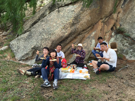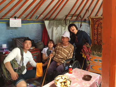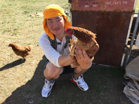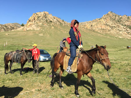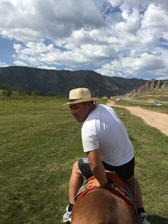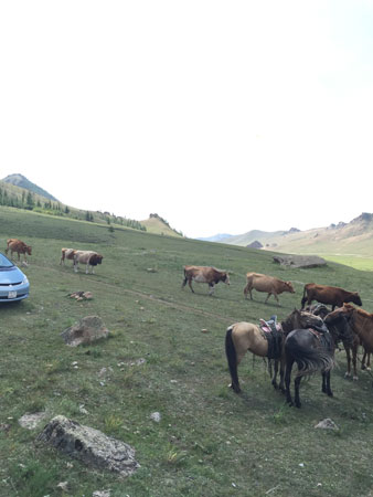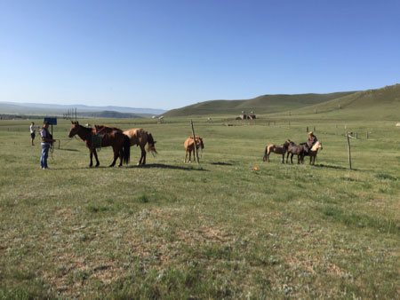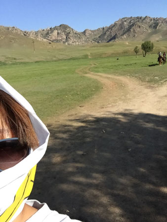 <モンゴル女子4人旅。(中編)> 9月にちわですよー。なんだかすっかり秋めいておる、 ここ東京。 週末は、ミグノン写真展@TOBICHI2も好評で、 わたくしうれしい所存でございます。 さてさて、モンゴル旅の前回の続きダヨ〜! モンゴル滞在3日目は、別のキャンプへ移動している途中、 まわりになーんにもない道で、 立ち往生している車と、おじさんとおばさんを発見・・・。 うわー、こういうことってあるんだろうなぁ。 絶望的に、地面に座っているおじさんと対照的に、 こっちの車に近づいてきて、 「バッテリーあがっちゃってさ!」みたいな話をしている。 助けてあげるのかなーと思いきや、すぐに話は済んで、 わたしたちも出発。 ちょっとしたら、バッテリーを持って歩いてる青年を発見。 あの人がバッテリーを届けてくれるんだね。 電話の電波もあるんだか、ないんだかみたいなところだし、 色々大変だなぁ。 ▲途中のわりと国道っぽいところで見えた、ヤギの大群。 ▲ヤギたちの横断。すごい数・・・。 いったい何匹いるの。だれのヤギなの・・・。 そうこうしながら着いた2つめのキャンプは、 山がバックの、すごロケーション! ▲これで夜の20時くらい。明るいのね。 次の日は、ガイドのトックンたちがどこからか 「親戚の馬」ってやつを集めてきて、それに乗ることに。 「最初の馬よりも、馬慣れしてない観光客が乗ることには 慣れてないヨ」 とのこと。 そ、そうなの? わたしが一番若いから、 一番のじゃじゃ馬に乗ることになり、すっごい乗りづらい! 馬によって、こんなにもちがうとは! ちょっと油断すると、走りだしそう! 「コイツはすごく走りたがっていて、 このロープを離したら、帰ってこないだろうから、 ロープは持っておくよ」 と、カズオ。 えー!そうなの!?お願いします、お願いします。 ここで迷子とか、勘弁だよね。 「でも、こわがらないで。馬に伝わるから」 えー!ムリだよームリ!こわいもん。 でも、自分をだまして、「こわくないよ〜」って気持ちで 乗ってみる・・・。これでいいのかな? ▲集められた馬たち。どうやって集めてこられたの? ▲日差しが強い!(これはスガノさん) そんな馬に乗って、 「このへんは、ぼくたちの おじいさんの持っている土地だよ」 と案内してもらう。 すすすげーーーーーっ。 ▲彼らのおじいさんの土地。 ▲すごい・・・。 ▲日差しが強い!(わたしです) わりとおだやかに、お散歩。 途中、トックンたちのおじいさんの住んでいるところに おじゃまさせていただく。 おじいさんはずーっと遊牧民をしていて、 15人こどもを、ゲルで育てたと。 その孫たちが、トックンと、カズオ。 彼らも、こどもの頃からこのあたりで 暮らしていたんだって。 ▲そんなトックンによるニワトリつかみ。 それぞれの家庭で味がちがうという、 自家製の馬乳酒をいただいたり、 ヤギのミルクのチーズをいただいたり、 おじいさんのお話を少し聞いて、失礼する。 おじいちゃん、元気でねー。 ▲おじいちゃん、まだまだ元気。ゲルにはテレビもある。 お昼は、新たな人物スマイリー (笑顔がすてきだからそう呼んでいた)が登場して、 車で、ランチを持ってきてくれたので、 日陰を探して、ピクニック。 ▲日陰はすずしい。 自分たちの乗っていた馬はそこに、つないでおき。 ▲わたしたちの車と馬のうしろを、 急に牛が下山。 こっちのひとがよく食べるという、松ぼっくり。 これは・・・! うろこをむしると、こんなふうになっていて、 このひとつひとつの小さいのを、 歯でむくと、いわゆる松の実が登場するのよ! おいしい!んだけど、このビジュアル・・・。 「歯」が苦手なわたしには、ちょっとこわい。 モンゴルチームは、おしゃべりもやめて、 ひたすらに、夢中になってムシャムシャ食べてる。 お昼休憩をしてからは、ひたすらに、移動。 この乗馬は、お作法とか何もなくて、ただ、 移動のための「足」だから、 どれだけ快適で、長時間乗っていられるか、が 勝負っぽい。 おしりが痛くなれば、ちょっとずらすし、 膝が痛くなれば、足をちょっと上に乗せるし、 立ち上がるし。 ▲ずらしのカズオ。 ずらして、振り向いて、みんなの様子をチェック。 モンゴルの馬の乗り方は、基本、 ママチャリの、ヤンキー乗りみたいな感じ。 それが、モンゴル流。と、勝手に解釈してるよ。 はじめは、それをするガイドさんを見て、 「ヤンキーの乗るママチャリみたいだなぁ」と 思っていたんだけど、 わたしも3日目には、その技をすっかり習得。 「コレ、楽だわ〜〜〜」 って言ってましたわよ。 順応性には、わりと自信があります。 あーもーーーー夢みたいっっ!!!夢! こんな大平原を馬で走るなんて〜〜〜。 って、ヤンキー乗りしながら、 しみじみ静かに噛み締めたよ。 でさ、そんなところで、やっぱり人は、歌を歌うね。 これがまた気持ちいいんだわ。 で、どういう歌がいいか、色々歌ってみたんだけど、 やっぱり演歌っぽかったり、昭和の歌謡にかぎる