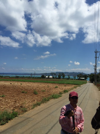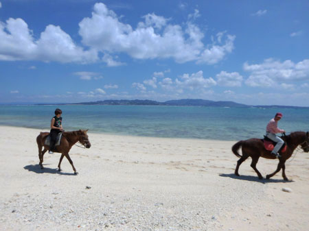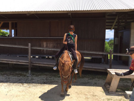 <南へ。そして、また馬に。> シルバーウィークにちはで、敬老の日にちはー! これだけ連なった「休」だと、 今日が何の日なのか?っていうことがわからなくなるのは わたしだけでしょうか。 そんな連なった「休」の初日に行われた、 ミグノンプラン主催のイベント「いぬねこなかまフェス」。 一日、お手伝いしていたのだけど、 すすすごかった・・・。 どうぶつが好きなひとが集まって ふむふむ言ったり、ガハハハ笑ったり、 ちょっとほろっとしたり、また笑ったり。 ふわふわしたものに包まれるような、 あたたかい、ふしぎなイベントだったわぁ〜。 すっごくおもしろいんだけど、なかなか説明しづらい おもしろさ! 「まずは、だまされたと思って、参加してみて!」 って言うのが、一番だな。 来てくれていたお客さんたちも、 「また来年も参加します!」って言っていたのが、 うれしかったぁ。ああ、たのしかった。 (当日のレポートはこちらで見られます) ちょっと前に、フェスの準備やらもある中、 無理やりに最後の夏を感じに、南下してきまして。 「今年の夏はあんまり遊ばなかったなぁ」 って思ってたんだけど、モンゴルに続き、 最後にひと夏分を、やったね。 ちょっと海に入ったりしながら、のんびりしよう。 と思っていたんだけど、わたし、ふと、思っちゃったの。 「馬に乗れるところがあるんじゃなかろうか?」 と。 もう、モンゴル以降、すきあらば乗りたい気持ちだからね。 近場にある乗馬クラブで、 小さな円を描きながらグルグルと練習する。 とかじゃなくて、 外周がしたいのや、わいは! (「外周」というのは、外で乗ること) 通勤を馬でやりたいと思ってるくらいだからね。 いますぐにでも、乗りたいくらいだもん。 で、空港に着いてから、こっそりとiPhoneを使い、 インターネットで検索してみたわけですよ。 そしたら、フェリーに乗って行く近い島にあることが判明。 でも、そこに行くには フェリー乗り場までも少しかかるし、 フェリーの便もそんなに多くない。 半日つぶれちゃうから、悩みましたわよ。 せっかくのんびりしようと思って行った沖縄で、 活発に活動しちゃっていいのだろうか? でも、これで行かなかったら 次に馬に乗れるのはいつになるかわかんないし、 もう、いっそ乗っちゃおう。って 電話して、予約をさせてもらい、フェリーの予約も 「キャンセル待ち」ってなってるけど、 インターネットで予約して、いざ! 朝、フェリー乗り場に着いたら、 インターネットで予約していた日がまちがってて、 次の日の往復ととっていたという、ヘマ! なんてこったぁ〜〜〜〜。 どちらにしても、その日の復路が予約がいっぱいで、 乗れないからということで、 フェリー乗り場に車を置いて行くことに。 フェリーって、まったく慣れてないから、 ワクワクするぅぅぅぅ〜〜〜〜〜。 日常で使っている人には、 何もワクワクしないと思うけどさ。 ▲フェリーの売店の すごくぶさいくでかわいいおにぎり。 ▲風になびかれながら、海をずっと見ちゃう。 ▲伊江島という島に到着! 港から5分くらいの場所にある乗馬クラブ 「伊江島ビーチサイドホースパーク」さん。 帰りのフェリーの時間もあるから、 1時間コースにして、周りをお散歩させていただくことに。 夫ははじめての乗馬のため、先生にひもを引いてもらう。 わたしはモンゴルの話をして、ひもは引かずに、 ペースは初心者に合わせて、ゆっくりコース。 ああ、馬! わたしが乗らせてもらったのは、小さい品種の馬で モンゴルの馬と似てた〜〜〜。 ▲むふふふ。 うれしーーーーーーーーーーーーーーーーーー! モンゴル流が通じるか不安だったけど、だいじょうぶそう。 ああ、お馬さん!お馬さん! 道を歩いたり。 畑を歩いたり。 畑からは海も見える! やーーーーーーーーっ。最高! 最後は浜辺を歩いた後、最後に先生が乗った馬について、 駈歩をさせていただく! ▲このあと、パカラパカラ! こんなにすぐ、乗れちゃうなんて!!! 初体験だった夫も、よろこんでいたわ。 ああ、お馬さん、ありがとう! 1時間堪能! インストラクターのご夫妻いろいろおしゃべりをして、 「モンゴルにもぜひ行ってみてください」と に、勝手にPRしておいた。 ここでは、水着で馬に乗って、 そのまま海に入れるコースとかもあるらしい・・・! そんなこともできるのかぁ! 沖縄に行くときには、また行こう! フェリーまでの時間は、島の原付きバイクをレンタルして 周ることに。 ささささ最高ー! 車がフェリーに乗れなかったおかげで、 こんなたのしみ方をできるなんて〜ツイてるわぁ。 最後は浜に。 浜に行ったら、ぬいぐるみのような 仔犬を持った少女がとつぜん現れて。 「わぁ〜かわいいね〜〜〜どうしたの?」 「拾ったの」 「ええええええ????」 なんて話してたら、 「持ってていいよ」 って、急にわたしに犬を渡して、海に入っちゃった。 えええええっっ!?なんだこの展開は!? おい、仔犬ぅ! おねえちゃん、行っちゃったよ。 わ