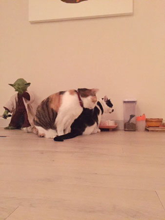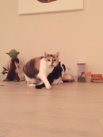<ねこ仕事納め。> 先日乗っていた、夜の電車。 車掌さんのヴォイスが、ものすごくウィスパーで、 いまだかつてないほどの、ウィスパー。 どれくらいかって言うと、深夜バスに近いレベルと言えば わかっていただけるかしら・・・。 そんな中、ものすごくノイジーないびきの乗客。 なんか、ますます、深夜長距離バスを思い出す、 年末の電車なのでした。ああすごかった。 なんかさー、ほんとに年末かなぁ。 まだ信じられない! まあ今年も色々ありしたが、最後に個人的に大きいやつ、 出ちゃいましたよ。 少しまえに友達から 「事務所のまえの駐車場に、ねこが毎日来る」 というタレコミ。 どうやらそのマンションに、 ねこをたくさん飼ってるおばさんが住んでたんだけど その人は引っ越してしまい、 ねこが何匹か残ってしまった。 一回、捕まえに来たらしいんだけど、 それでも捕まらなかったのが、そのねこ。 その後、何度連絡しても、来ないから、 もうかわいそうだからどうにかしよう、という話になって 師匠・友森さんに相談して、ねこを捕まえる捕獲器を 借りることに。 いつ捕獲するか、という相談をしていた最中に、 「グレーのねこ欲しいんだけど、いる?」 と連絡をくれた友人が。 いろいろ、飼いたい人を探してはいたけど、 子猫がいい、とかで、なかなか見つからず、 どうしよう?でも、もうどんどん寒くなるから、 捕まえてあげたい!と思っていたときですよ。 ちょうどそんなときに、その連絡。 「え!いるよ!ほしいの?まだ外にいるんだけど・・・」 と、状況を説明したら、 さっそく見に行くということになり。 見に行き、ちょっとワイルドな状態だけど、見て、 「ワイルドすぎるな〜」と断られるかと思いきや、 「すぐにでも捕まえたい!」とのこと。 あわてて、すぐに捕まえに行ったのよ〜。 師匠に捕獲器を借りに行き、 「あんまりにも捕まらなかったら、連絡して」 「はい!」 心強い。 いまは、心が、『スターウォーズ』に どっぷりモード(2回観ました!)だから、 勝手に友森さんのことをヨーダに見立てて、 自分はルークってことにして、 なんてちょっと考えたりしていましたよ。 古い方の『スターウォーズ』だけどね。 そんなで捕獲器を、事務所の入り口に設置して、 捕獲といえば、唐揚げ。 ちぎって、『ヘンゼルとグレーテル』の道しるべみたいに 捕獲器の入り口まで、順番に置いていく。 設置して、1時間くらい? いつもそのねこが、事務所に「エサくれよ〜」って 来る時間に、ピッタリ正確に現れた! 1 ▲右端のみどりの布がかけられてるのが、捕獲器。 ゆっくり、ひとつずつ食べて、近づく。 ドキドキドキドキ。 ここで、物音をしないように、気をつけて、 静かに見守る。 入るか?入るか? 入って・・・お?入ったけど・・・? ステップを踏むとバシャン!と扉が閉まるんだけど、 閉まらない! あれ?出てきちゃった?あれ?? あ、また入った。お?おや?・・・バシャン! 入ったーーーー!入った!!! すっごく簡単に捕獲出来た〜〜〜〜〜。 そのまま、病院に連れていき、 色んな検査と、去勢手術をして、無事退院して、 いまはもう、あたたかいお家の中で、 暮らし始めましたとさ。 師匠の手を借りずに、弟子業が出来てよかった〜。 このスキル、ふつうはまったく必要ないやつなんだけど、 こんなふうに役立ってよかったなぁ。 こんなこと言うのも、ヘンなんだけど、 ねこの捕獲って、 ちょっと探偵ごっこみたいで、たのしい! そりゃあ、かんたんに捕まえられなくて、 つらいってことも、もちろんあるし、 ねこがパニックで暴れたりしてるのを見るのは、 つらい気持ちだけど、 この捕獲は、ねこにとって、人間にとって、 いいことにつながることだしね。 すごくマニアックな発言で、恐縮! は〜ある意味、仕事納めだった。 あのねこ、あの家族とうまくいって、 しあわせになりますように。 うちにいる、かつて捕獲器で捕まったであろう お2匹さんは・・・。 ▲食べ終わったミッツが、牛のエサを狙って、 プレッシャースタンバイ。(近すぎ!) ▲「こら、ミッツ!」と怒られたのニャ〜〜〜! 退散するニャー! ▲こわいって言わないで!かっこいいって言って! ま、元気なのです。