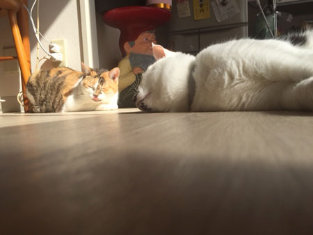 <イヤホンでウキウキ。> シガッツ!それは、出会いと別れの季節。 わたしのごひいきにしていた、ヤクルトのヨーグルト 「カップdeヤクルト」と、 「ジョア(レモン味)」も3月いっぱいで 終了しちゃってさ・・・。 次の登場シーズンまで、お預け・・・。悲しいっす。 桜はきれいだけどね。 先日、耳栓みたいな イヤホンをしているひとがいて、 実物を初めて見たら、そりゃあもう うらやましくなってさ。 耳栓から、音が出てくるのですよ。 すっごい時代や。 なくさないように、入れておくと充電もできる ケースがついてるのも、すばらしい計らい! わたしは、なくしそうだなぁと思って、 買わなかったんだけど、急に興味がわいてきちゃった。 仕事中には、パソコンにイヤホンをつないでるんだけど、 そのまんまでつなげると、ケーブルがじゃっかん短い。 前に使ってた延長コードを、 引越しのときにどこかにしまっちゃって、 それ以来見つからにゃくてさ・・・。とほほ。 「延長コードをそろそろ買おうかなー」 って思ってたところで、 延長どころか、むしろそのケーブルなくしちゃおっか? と思ってね。 軽く調べてたら、色々あるんだけど、びっくりしたのが どれもなかなか、お手頃なお値段ということ。 ヘッドホンはBOSEがいいとか、 なんやらかんやら色々見たことあるけど、 イヤホンはぜんぜんノーマークだった。 てゆーか、ぜんぜん見かけたことがないな、 Bluetoothのイヤホンて。 そう思って、ふと隣の席の 宇宙部の多田さんに聞いてみたら、 「ぼく使ってますよ」 えええぇーーーーーーー!なんてこった! 何ヶ月も隣に座っていた彼が使っていたなんて。 気づかなかったよ。 興味がないと、目に入ってこないものなのね。 みんなふつうーに使ってるかもしれないよね。 「あいつ、何をいまさら!」って思われちゃうかも。 多田さんのアドバイスを聞きつつ、ネットで探したら よさそうなのを発見。 どうやらこういう商品は、 ジムとかジョギングの人の需要があるみたいだね。 なるほど〜〜! たしかに、ジムで走ってる時って ケーブルがじゃまで、時にはケーブルに指とか ひっかかっちゃって、iPhoneが吹っ飛んだりしたことが 何回かあるから、それはよいかもしれない。 これにしてみよう。ポチッとな! んで、届きました。 う、う、う、うれしい。すんごいうれしい。 ケーブルなんてあって当たり前だったけど、 ないとこんなに楽ちんなの??知らなかったよ。 はーーー最高最高。快適だわぁ〜。 なんで今まで知らなかったんだろう。 もっと早く取り入れたかったぜ。 家の固定電話が、コードレスになったとき、 ひとびとは、とてもおどろき、 モジモジするときに、 受話器を持ってない方の手 (おおむね左手だろうか)で トルネードのようになっているコードを ぐるんぐるん回す、あの仕草のゆくえを気にしつつも、 電話をしながら、歩き回ったりできることに、 感動したあの日。 (歩き回りすぎると、親機との距離のかねあいで、 ピーピーいっちゃうときとかあったよね、当時って) リビングとかじゃなくて、自分の部屋で 電話でおしゃべりができる〜〜と、感動していたあの日。 そのときのことを、思い出した。(昭和の話や・・・) 「コード、じゃまだな〜!」 って無意識で思っていたのに、なくすという考えは、 まったく思い浮かばなかったわぁ。 週末、ゴキゲンで使っていたよ。 これを使いたいから、音楽聴きながら遠出とかしたいね。 残念なことに、わたしのiPhoneの調子がイマイチで、 iPhoneの角度によっては、音がとぶ・・・。 これは、わたしのiPhoneのせいだと思いますよ。 思いたい。 なんか、ポータブルCDプレイヤーを思い出したね。 走っちゃうと、音がとぶ、あれ。 急いでるときの、音が飛ばない早歩きを マスターしてたな〜。 (これはきっと昭和ではなく、平成の初頭の話?) 最新のことを考えるということは、 過去をふりかえるから、ノスタルジックになるんだなぁ。 おなつかしゅうございます。 今週の2匹さんは。 あったかくなってきて、窓辺が人気です。 だるーん。 「無」の時間とも言える。 ねこって、ほとんどが「無」の時間なのでは・・・。 いいね、窓辺。 換毛期なので、ブラッシングしたよ。頭に乗っけたよ。 ▲かっこいい? さ、今週もよろしくぅーっっ!ファイ!