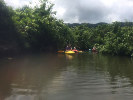 <はじめての西表島。> また日本に起きてしまった、 地震被害に遭われている方々に、 お見舞いをもうしあげます。 2011年に起こった地震のことを思い出しながら、 東京ですら、どんどん来る余震はつらかったので、 本当につらいと思います。 地震の情報がどんどん来て心配な気持ちの中、 奇しくもあの2011年3月11日から数日間、 合宿生活を送った仲間たちと、西表島に行ってきました。 目的は、去年作ったイリオモテヤマネコの応援歌を 現地西表島と、那覇で行われるイベントで お披露目するため。 あの日、それぞれにバラバラだったけど、 たまたま近くにいて、集まって、 全員がそろったのは夜中だったけど、 身を寄せあった仲間。 歌を作ってから、 「いつかみんなで、西表島に行って、 生でお披露目できたらいいねぇ」と言っていたら、 もう実現しちゃったのです。 今年から4月15日が「イリオモテヤマネコの日」と 制定されたそうで、そのお祝い。 すでに現地では、 子どもたちが歌ったり踊ったりしてくれている という噂を聞いていたんだけど、ほんとうだった! 「じゃあみんなで歌って、踊ろう〜」と言ったら、 まあ!みんな、踊れる!感動・・・! ▲西表島にて。こどもたちー! ▲那覇にて。大人もみんな踊ってくれた〜。 ▲西表島にてアー写。 うた:坂本美雨と国広和毅 ダンス:篠崎芽美とヤマネコズ(李千鶴&ゆーないと) でございます。(撮影:池田晶紀) は〜たのしかった〜〜〜。 西表島では、イリオモテヤマネコを守る、 「ヤマネコパトロール隊」というのがあって、 毎日、島をパトロールするボランティアさんたちがいます。 ▲パトロール隊が設置している看板。 つい最近、このあたりで目撃された! そういう活動や、 研究のために山にこもって、 ヤマネコを見たのは、星の数ほど!な、 ヒゲさんというおじさんがいて、 その彼がやっている「村田自然塾」という 島のツアーに参加させてもらうことに。 カヤックで、マングローブの川下りへゴー! マングローブっていうのは、木の名前かと思っていたけど、 「森」とかそういう意味なんだってね。 し、知らなかった・・・。 西表島には日本のマングローブでは 一番種類が多いらしい。 見たのは、オヒルギ、メヒルギで、 川を下って海に近くなってくると、 ヤエヤマヒルギになっていってたよ。 全部同じに見えていたけど、ちがうのね・・・。 いろいろ失礼しました、マングローブさん。 大自然、ほんとうに気持ちいい! ▲水没防止に袋をもらったから、 写真が袋越し感満載になっちゃった・・・。 ▲ヒゲさん。移住して40年。ガイドをやって20年。 水から、タコの足みたいに出てるのが、ヤエヤマヒルギ。 根っこが、どんどん増えて、新たに地面に刺さっていく! その木にたまった塩分を、葉っぱに集めて、 その葉っぱが黄色くなって落ちる。 塩分排出システムがちゃんとできているんだって。 ▲集中的に、塩分が集まる。 水面を見ると、黄色い葉っぱが落ちてる。 おもしろい〜〜。 あまり時間もなくて、ちょっとしか乗れなかったけど、 川でわたしがこけて、 着ている服がビショビショになるけど、 ケイタイだけは守った! という、ほどよい安全なハプニングも起こったし、 いい思い出だ。大満足! もっとゆっくり行かねばな。 しかしこの旅は、 ちいさな安全なハプニングが多くて、 先発隊がフェリー乗り場にストールを忘れたけど、 後発隊が発見したとか、 飛行機の時間があるから、 1時間くらいで急ぎめで食べなくちゃならないなあと思って あの有名な「辺銀食堂」さんに行ったら、 「空港までは1時間見た方がいい」と言われ、 完全なる計算ミスのため、 着席して20分で出なくちゃいけなくなって、 超特急で作っていただき、超特急で食べて、 でも食べきれないから、包んでもらって、 タクシーに乗ったら、30分かからずに到着しちゃって、 「なんだ〜もうちょっとゆっくり食べれたじゃん〜。 くやしー!でも、おいしかったねぇ」 とか言って、お土産にジーマミー豆腐を買ったりして のんびりしてたら、 ゲートで 「この飛行機は100名以下の小さい飛行機なので、 この荷物は、機内持ち込みできません。 コレも、コレも」 と言われ、走って戻って、荷物を預けて。 結局早めに着いたことで、大事故にはならずに済んだという 結果、安全なハプニングとかね・・・。 ▲就航おめでとう! ▲これは100名以下だわ。 那覇でのイベントも終えて、 空港に到着したら、飛行機が遅延! 電車もない時間に到着したけど、 みんなで車で羽田空港まで行っていたから、 何時間もタクシーの列に並ぶことなく、 夜中に帰れたとか・・・。 赤ちゃんが2人いる旅だったから、 大きなハプニングがなくて、よかった・・・。 そんなこんなでございましたが、 お留守番をしてくれていた、お2匹さん。 いつもお留守番、ありがとう。 ▲ふーん。 ▲つぶれ豆大福。 ▲ねこが落ちてる。 ▲フフンフフン♪(ププッピドゥのメロディで) では、今週もがんばり