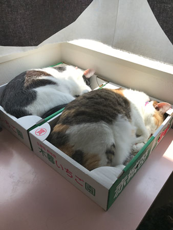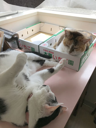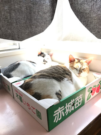 <カラオケボックスの新しい使い方。> は〜テステスマイクのテス。 5月のミドルにちわーっす。 すっかり5月も中旬。ピッタリ真ん中でございます。 いかがお過ごしでしょうか。 先週は、速かったねー。あ!っという間。 わたしも30代ミドルでございまして、 最近の女子会ってどんなんだか、 わからないのだけど (前は知ってたんかいと聞かれたら、 ぜんぜんそんなことはなく、 ただ、女子だけで集まったときに 「これって女子会〜」と言ってみてるだけ。 わたしのは「女子だけで会う」略して「女子会」 読み方は「じょしあい」かしらね・・・)、 この間は、あたらしい会合の形を体験したよ。 まずは、ごはんやトークを一次会として、 流行りの塚田農場に。 新宿の塚田農場で待ち合わせたんだけど、 「待ち合わせです」 「ご案内いたしましょうか?」 「あ、左奥にいるらしいんで、だいじょうぶです」 って、クールに言ったのにいない。どう探してもいない。 ここってもしや・・・? ちがう店舗に来ちまったーーーー。 なんとなんと、新宿には 北海道、宮崎、鹿児島に分かれて9店舗もあるみたい! ななななんてこった・・・! 南口と東口と東南口とか、ややこしー! 新宿塚田トラップやー。みんな気をつけて! なんとか無事に合流できて、 おいしくたのしくいただきました。 ごはんタイム終了後は、続いてカラオケへ移動。 そのカラオケでも、予約していた店舗だと思って行ったら ちがう店舗で、新宿チェーン店トラップ出ました〜。 こわいこわい。 このカラオケは、歌ってもいいんだけど、 歌わず超大画面、大音量で映像を鑑賞するというもの。 去年東京ドームに観に行った、 某アイドルグループ好きの集い女子会なのでした。 「どれからいくー?」 「やっぱりまだ初心者のゆーなちゃんたちに これ味わってもらうっしょー」 なんて、接待を受ける。 うれしいんだよね、自分の好きなものをオススメして、 それを受け入れてもらえるのが。わかるわかる。 やるからには、しっかり好きになってほしいしね。 再生するとまずは、ブルーレイの美しさが!! テレビ画面が大きいことで、際立つのね!感動! 何インチなんだろうか、 家のテレビの倍くらいありそうな、大画面ですもの。 うちもブルーレイにしてるけど、 テレビも古くなってるかもしれないし、 なにせ最近は、配信系ばかりで、 あんまりディスクを観ない生活だもんで、 比べ物になりまへんわ。おっどろいた〜。 あがるわぁ〜〜こんなきれいで〜〜〜。 ディスクの中から、ファンはツボだけど マニアックすぎる部分とか、 だれる部分を少し飛ばしつつも、 先輩たちの 「ここだけは観ていい?」という、 一番観たいシーンはもちろん、一緒に共有。 「次のこのコーナーが、たまんないのよね〜。 ここばっかり観てるよ家で」 「えー、ここ、そんなに観てたんだ!」 なんて、ファン同士も いつもはそれぞれの家で鑑賞してるから、 見方がひとそれぞれ。 カラオケの部屋もお座敷だから、 すっかりくつろぎつつも、ワ〜キャー言って、たのしいっ! 女子会たのしい! こういう遊びって、人ん家でしかしたことなかったけど、 音量を気にしなくていいし、最高やんっ。 アイドルファンの人たちの間では、 この形式は定番っぽいね。 カラオケで持ち込みディスクを再生できる店が増えている ということは、そういうことだもんね。 あぁたのし。 カラオケボックスも、みんなのやりたいことに合わせて 形を変えていくんだなぁ。 なんせはじめはスナックとか、宴会場だったのが 「通信カラオケ」になって、 個室になったところからスタートだもんね〜。 時代と共に、変化ですわ。 さ、お2匹さんは・・・ 毎日おもしろくてかわいくて、天才かっ! あ、こんにちはー。 はい、なんとなく集合〜。 あ、いっちゃうの? しょんぼりくん残留。 このしょぼ顔、たまらんなぁ。 人気のサンルームでは相似形。 箱増えてよかった〜。いただいたおいちいいちご。 お相似お相似、うれしいなぁ。 わ、奥のひと・・・!消えちゃうのかな・・・。 暑くて、ゆだる。 ゆだったついでに、ちょっかいちょっかい。 あ、ミッツはいないんだけど、 牛はananにちょっと載せてもらってまーす。 「ドコノコ」のフォトブックも受付中なので、 要チェック! 写真を決めるのが、悩ましいけど、たのしいよぉ〜。 今週も、たのしくがんばっていきまっしょい。
