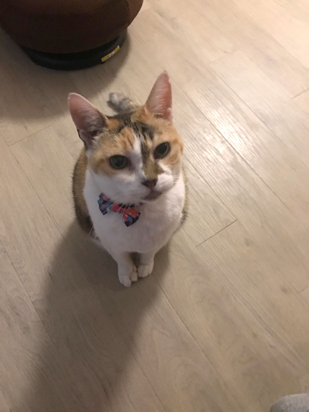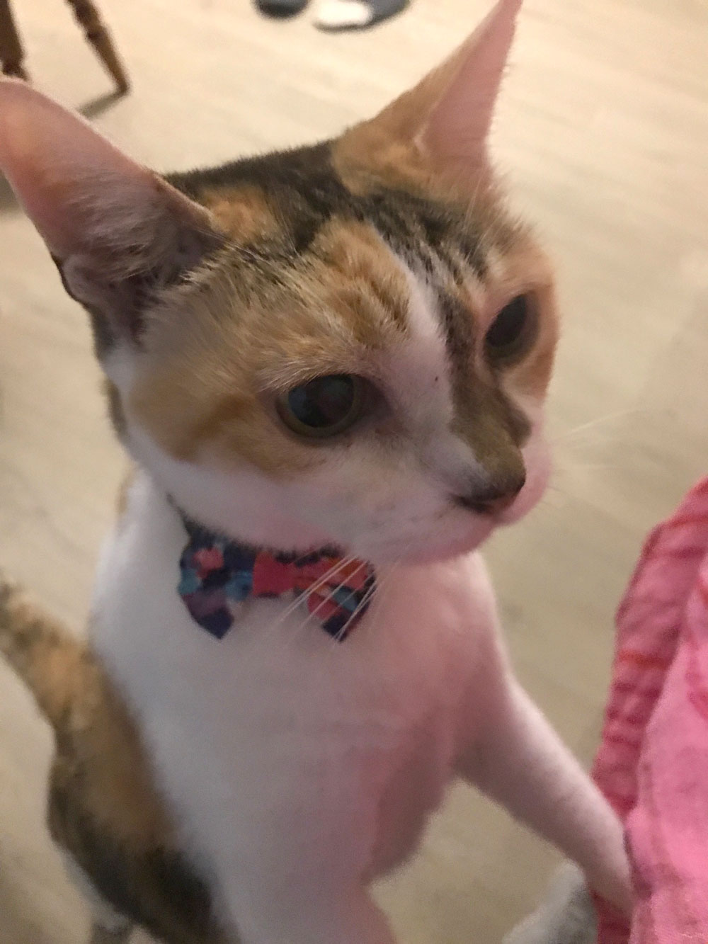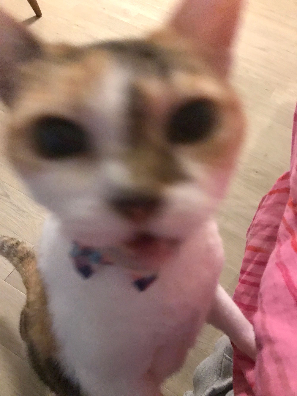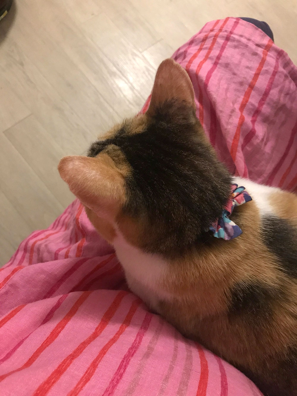 膝に乗る前に、ちょっと考えるタイプの彼女。