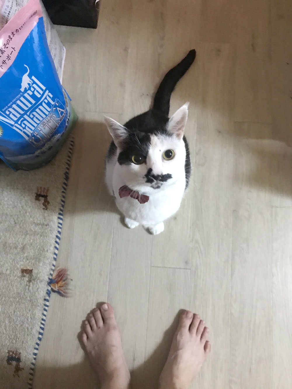 たちあがって膝に手をかけて、「抱っこしろ」になる。