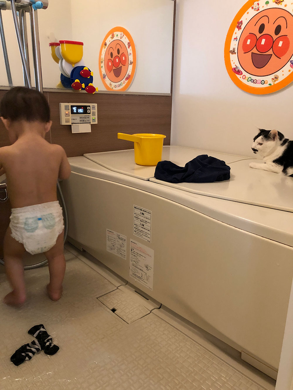 ▲1回びしょ濡れになって、着替えている途中でまた!