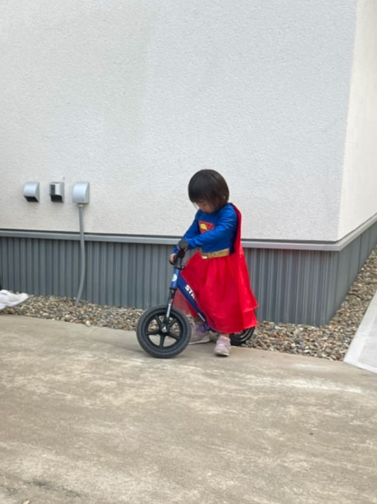 ▲ともだちの家で、ストライダーの練習をする