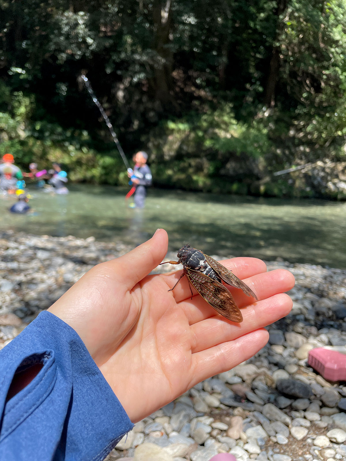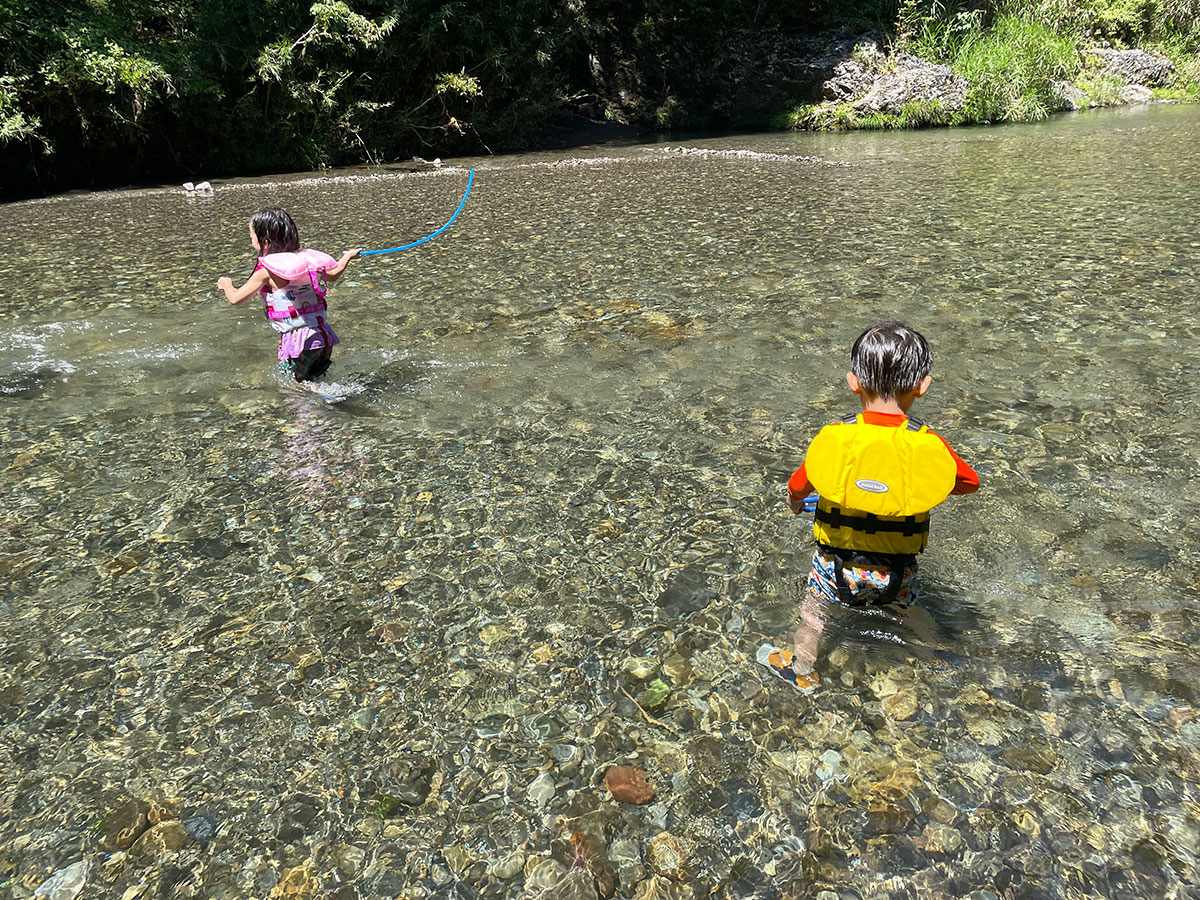 去年も楽しんでたけど、川辺で石で遊んだり、