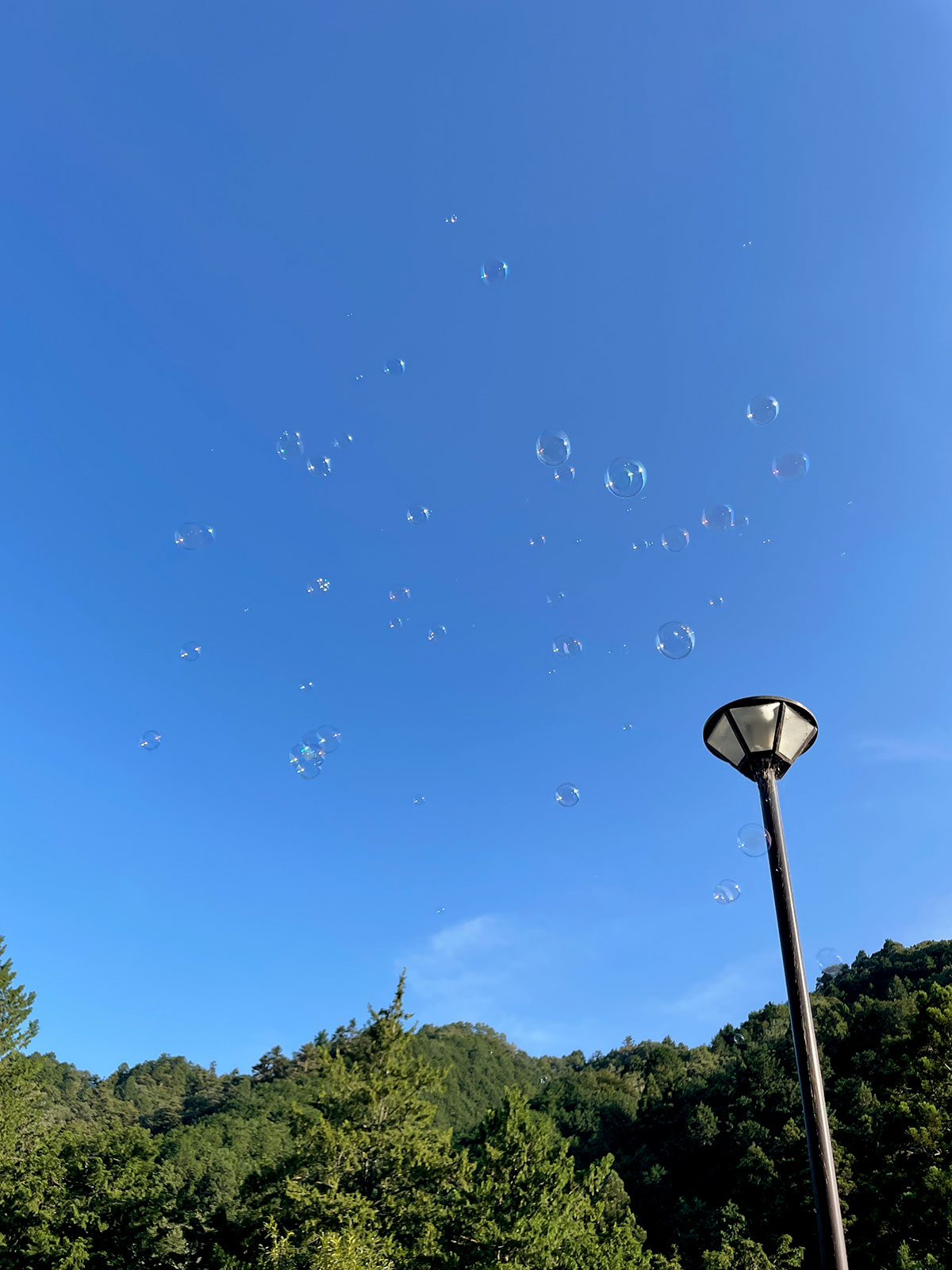 駐車場で突然思い出してやった、ぬるいシャボン玉。