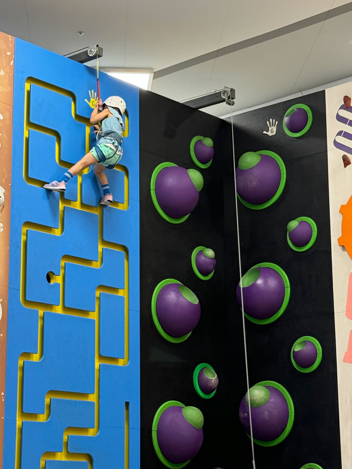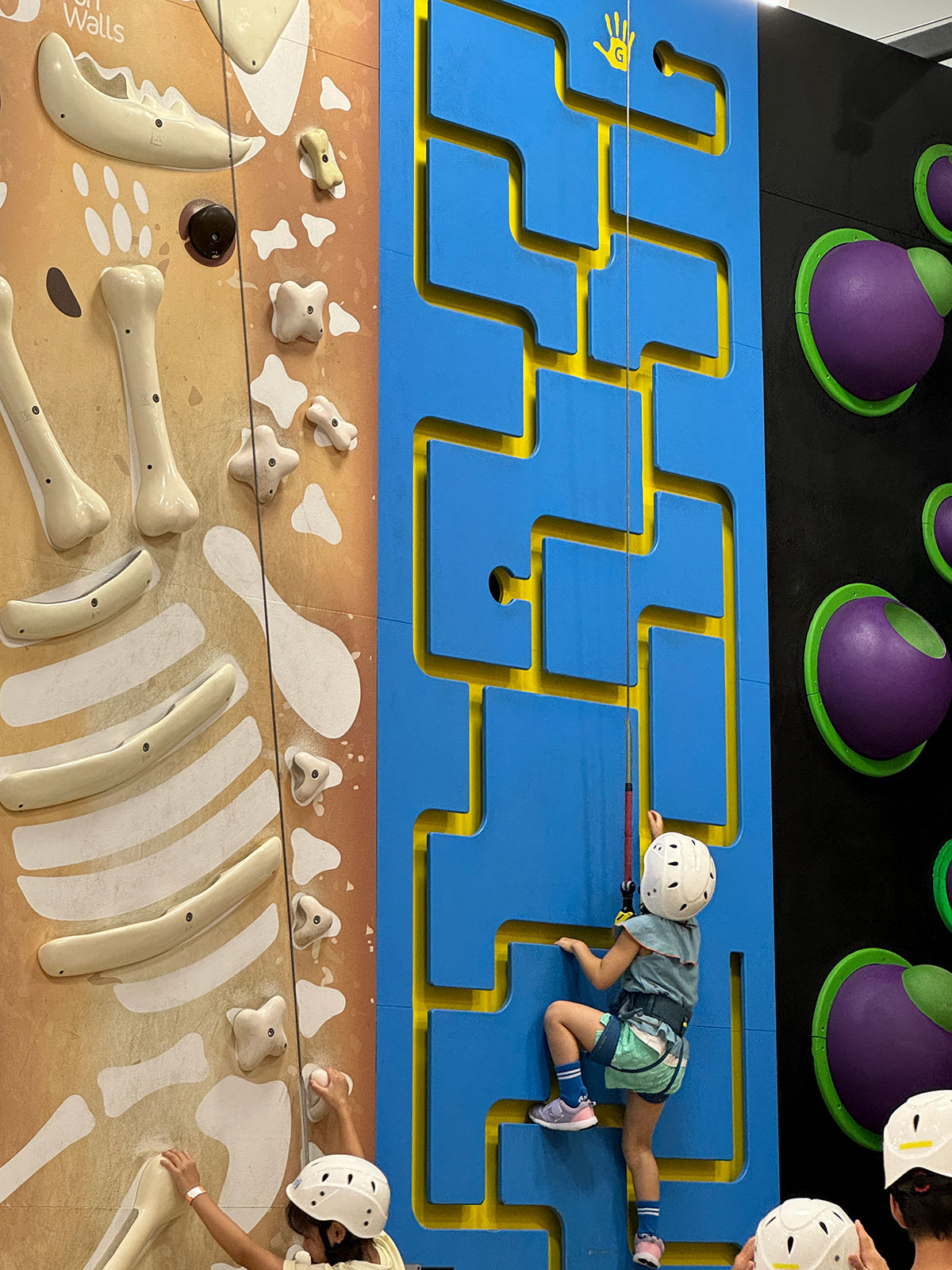 壁にぎっしりと、色んなタイプのクライミングが