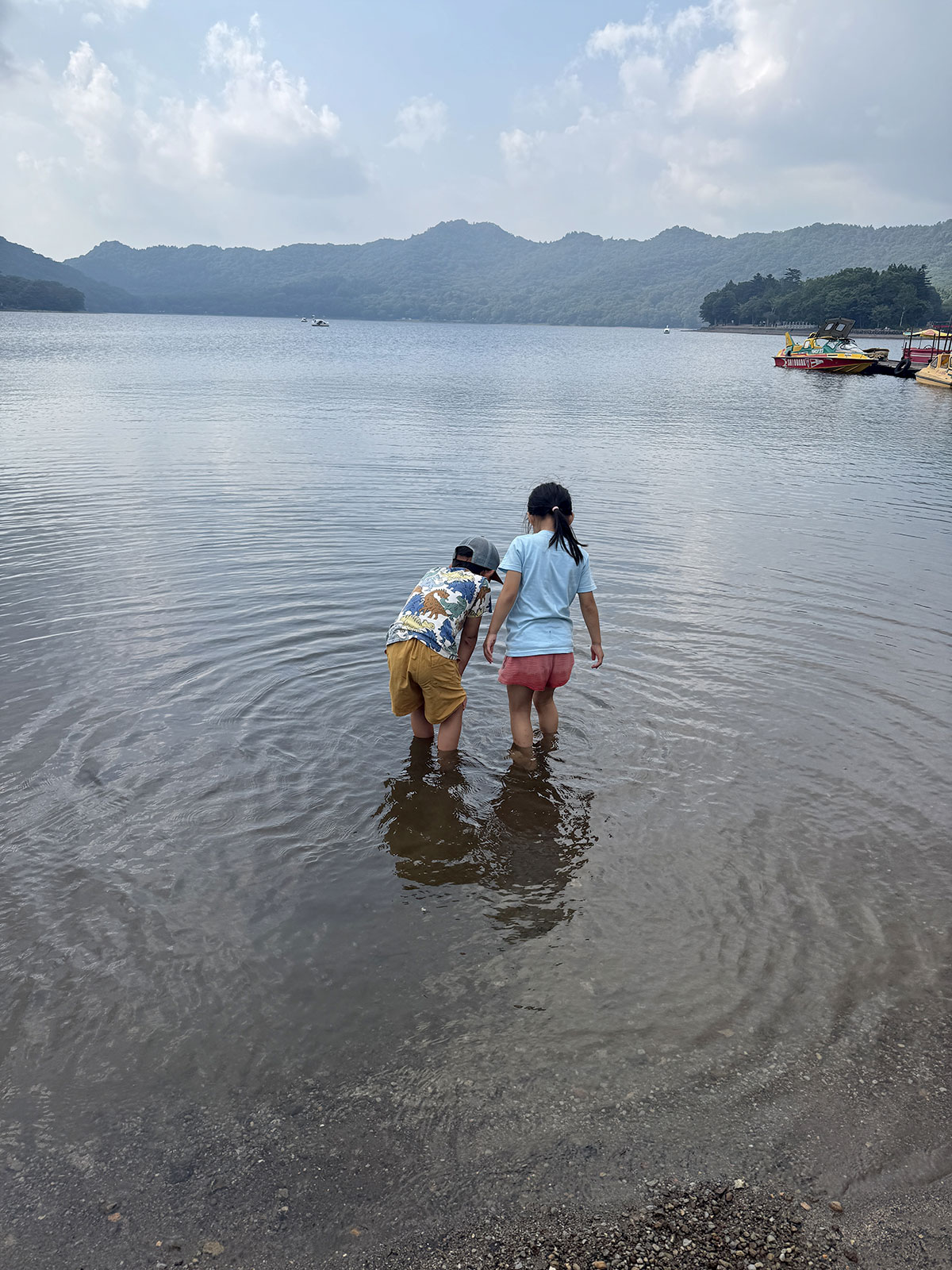 釣り堀で魚を釣ったり、焼いた鮎を食べたり。