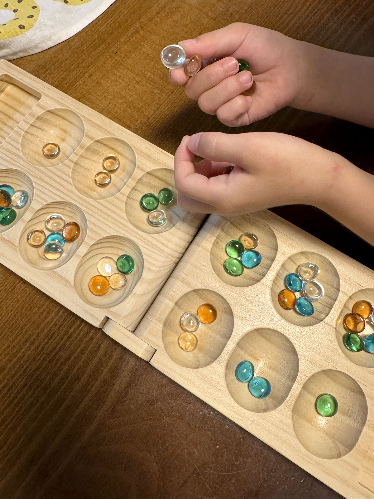 おはじきをどんどん移動させて、なくなった方が勝ち。