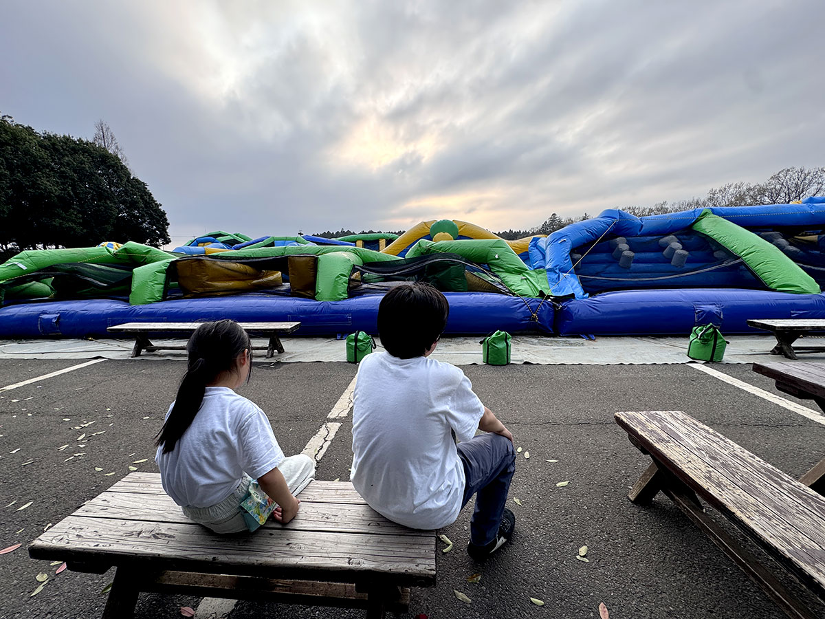 ▲日本最大級のエアー遊具の最後のお客さん。