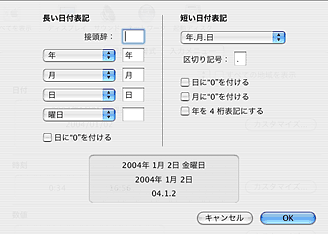 | ほぼ日式・除夜の鐘は、 みなさんがお使いのパソコンの時計に合わせて動くんです。 だから、ちゃんと時間を合わせてくださいね。 それと、ちょっとこれを確認してください。 ●ウインドウズをお使いの方 「スタート」→「設定」→「コントロールパネル」と 選んで、コントロールパネルのなかの、 「地域」を選びます。 そのなかに、「日付」があります。 そこにある「短い形式」を、図のように、 “yy/mm/dd”に、「区切り記号」を“/”に しておいてください。 ![]() それと、「時刻」のところ、これは、 「時刻の形式」を“H:mm:ss”にしてください。 ![]() ●マック(OSX)をお使いの方 「アップルメニュー」→「システム環境設定」→ 「日付と時刻」と選んでいって、時計を合わせてください。 ![]() さらに「言語環境」のなかにある、 「日付」の「カスタマイズ」を選んで、 「短い日付表記」を、“年.月.日”、 「区切り記号」を“.”にしてください。 ![]() 同じく「時刻」の「カスタマイズ」を選んで、 「区切り記号」が、 “:”になっていることを確認してください。 ![]() ●マック(OS9)をお使いの方 「アップルメニュー」→「コントロールパネル」→ 「日付 & 時刻」と選んでいって、 そのなかにある「日付の書式」を、選びます。 ここで、「短い日付表示」を、“年.月.日”、 「区切り記号」を“.”にしてください。 ![]() また、同じく「日付 & 時刻」のなかの、 「時刻の書式」の「区切り記号」が、 “:”になっていることを確認してくださいね。 |