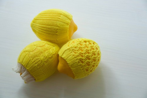 生のレモンに、ニットで洋服をつくった。