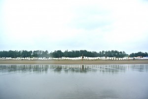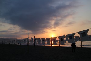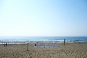 この砂浜に1000枚近いTシャツをひらひらさせます。