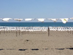 1000枚のTシャツを炎天下、砂浜に並べるもので、