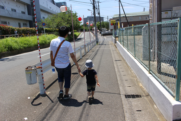 集中してあそぶ息子に、時おり声をかけて水分をとらせ、