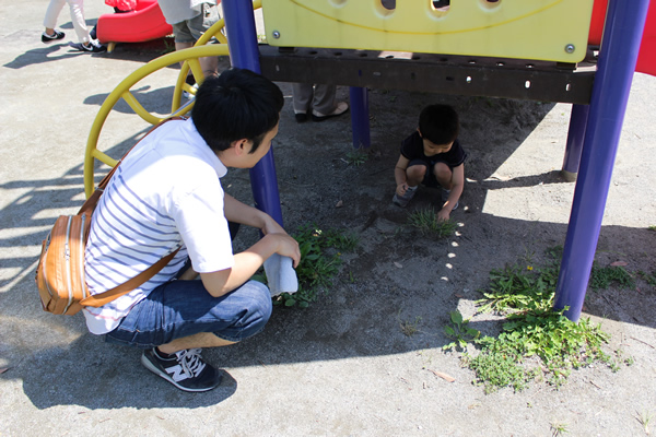 子ども達が、服を汚しているのを見ながら、