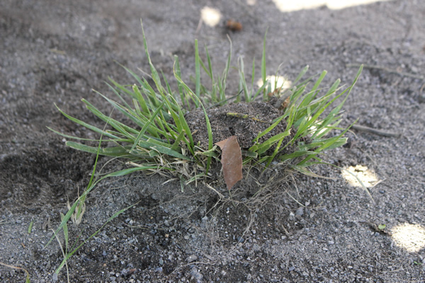強い日差しのせいで、砂が固まらないので、